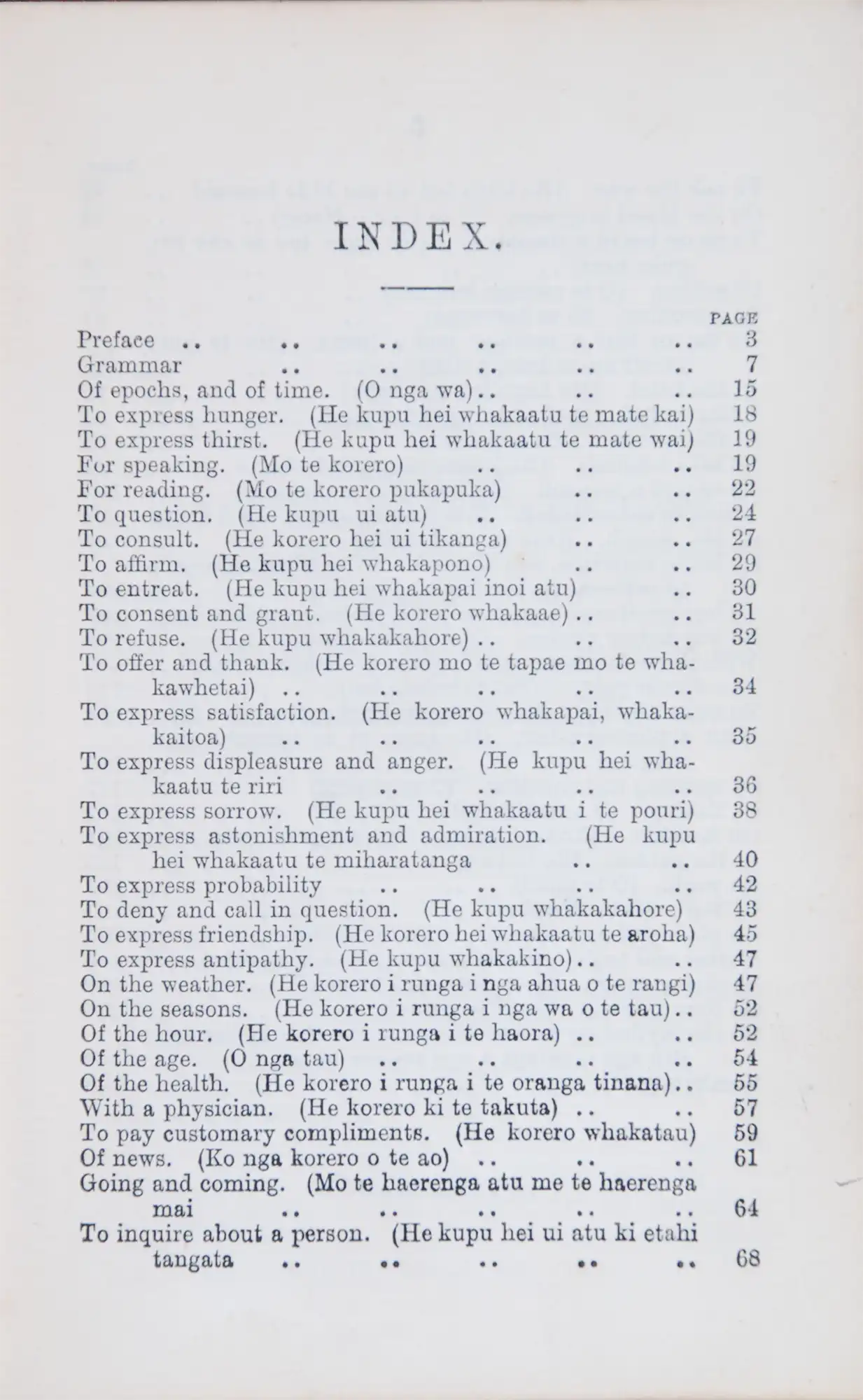William Williams. A Dictionary of the New Zealand Language, and a Concise Grammar; to which is added a Selection of Colloquial Sentences. 2nd edition. London: Williams and Norgate, 1852.