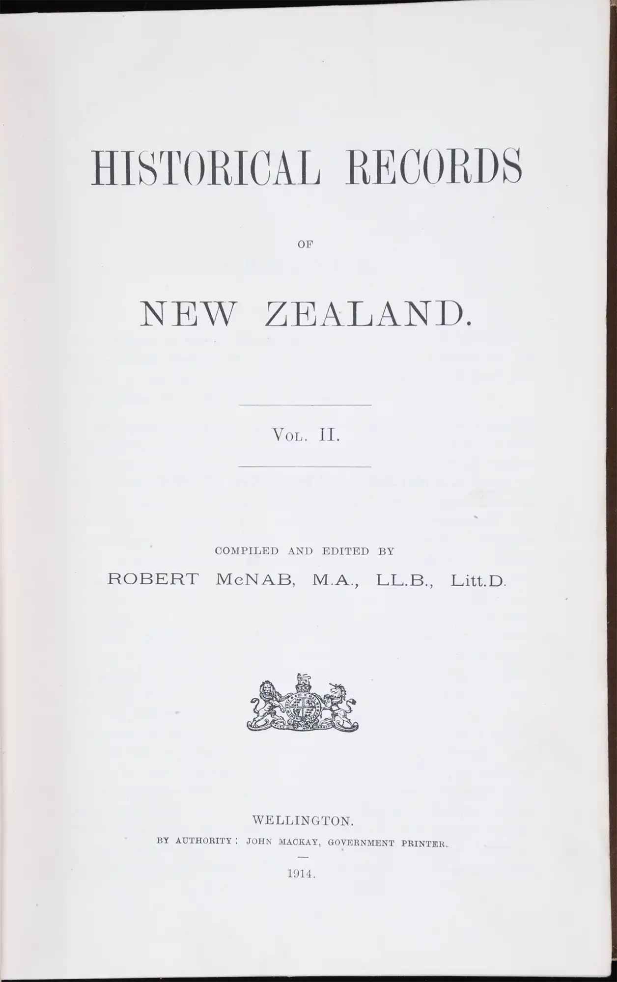 Robert McNab (ed.). Historical Records of New Zealand. Wellington, Govt. Printer, 1908-1914.