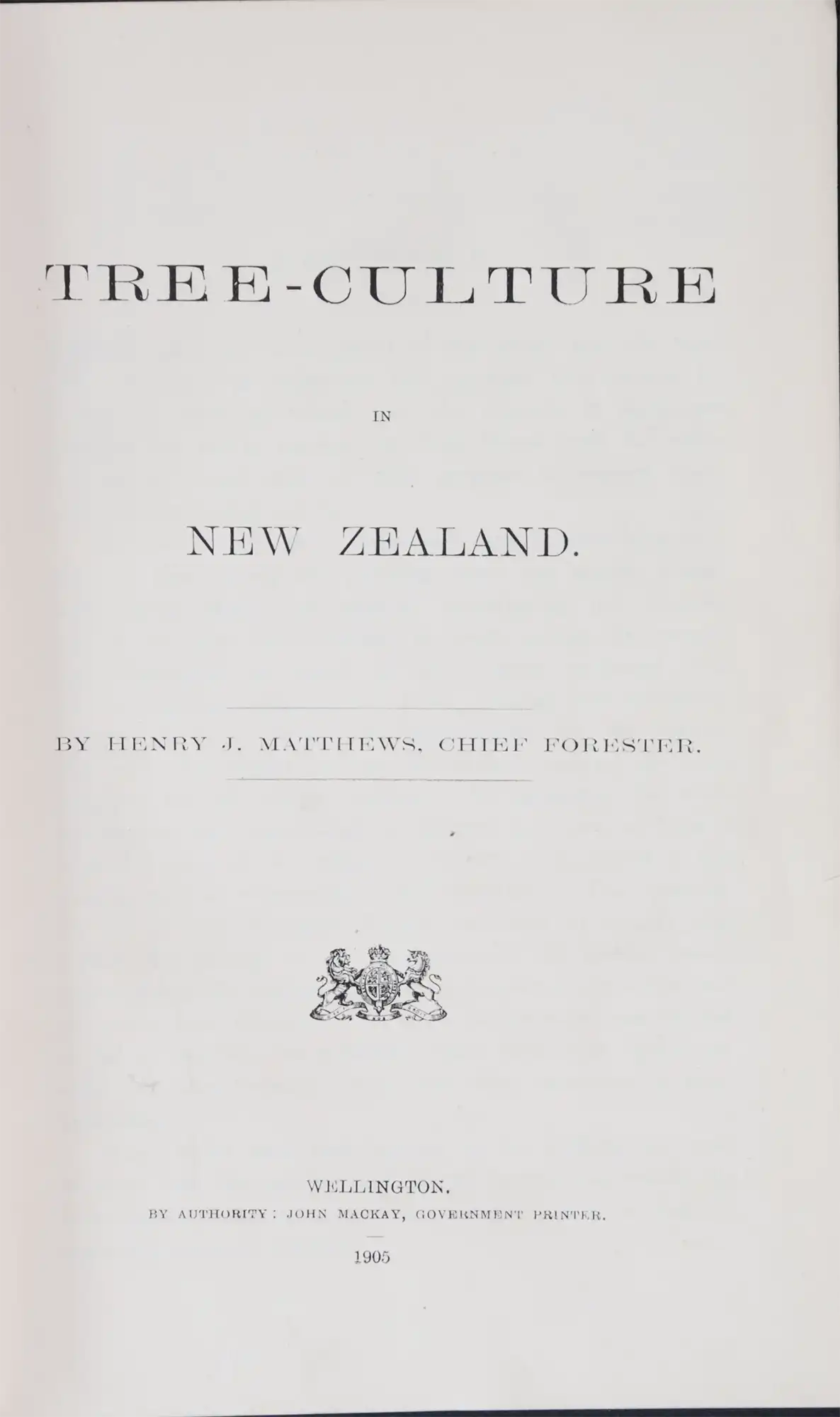 Henry J. Matthews. Tree-culture in New Zealand. Wellington: Government Printer, 1905.