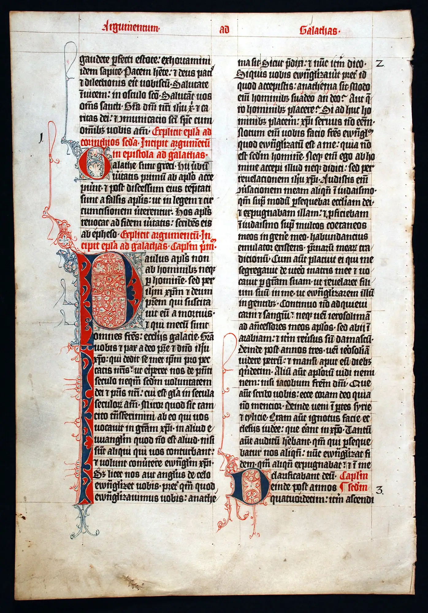 Originally of 139 leaves, this lectern Bible manuscript was divided by Reed into sections, including the binding and 47 leaves that were presented to Trinity Theological College, Auckland. The 62-page portion given to Dunedin Public Library is known as Reed MS4a. Reed also gave individual leaves to friends and educational institutions.