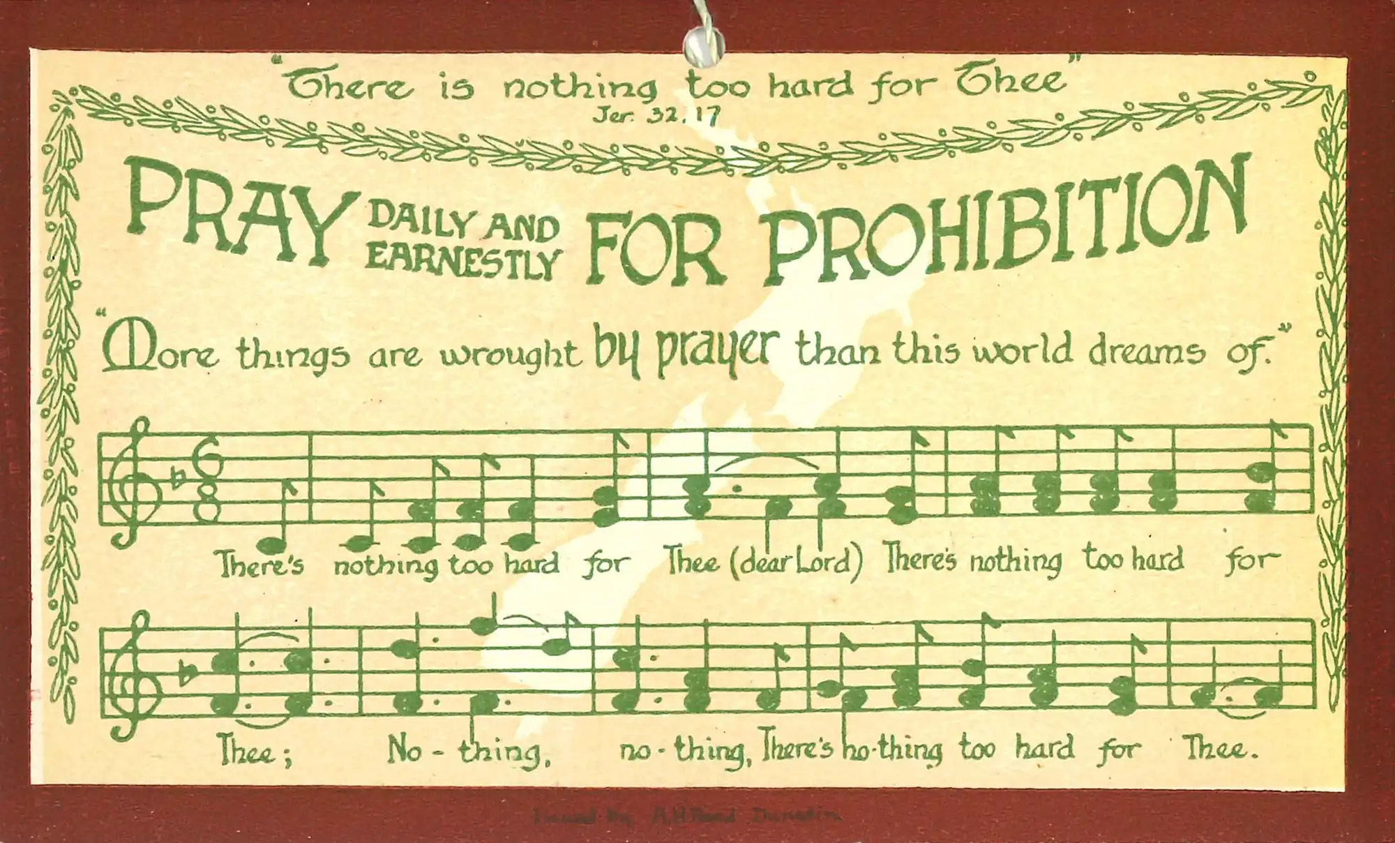 Printed card “Pray for Prohibition” issued by A.H. Reed, 1920s.
