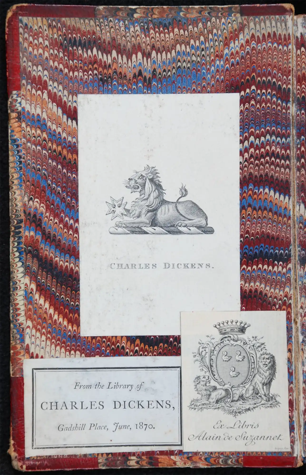 A.H. Reed collected several books from the library of Charles Dickens before they became prohibitively expensive. This French translation of The old curiosity shop published in Paris in 1857 contains both his bookplate and book label. It also bears the bookplate of Dickensiana collector Comte Alain de Suzannet (1882-1950).