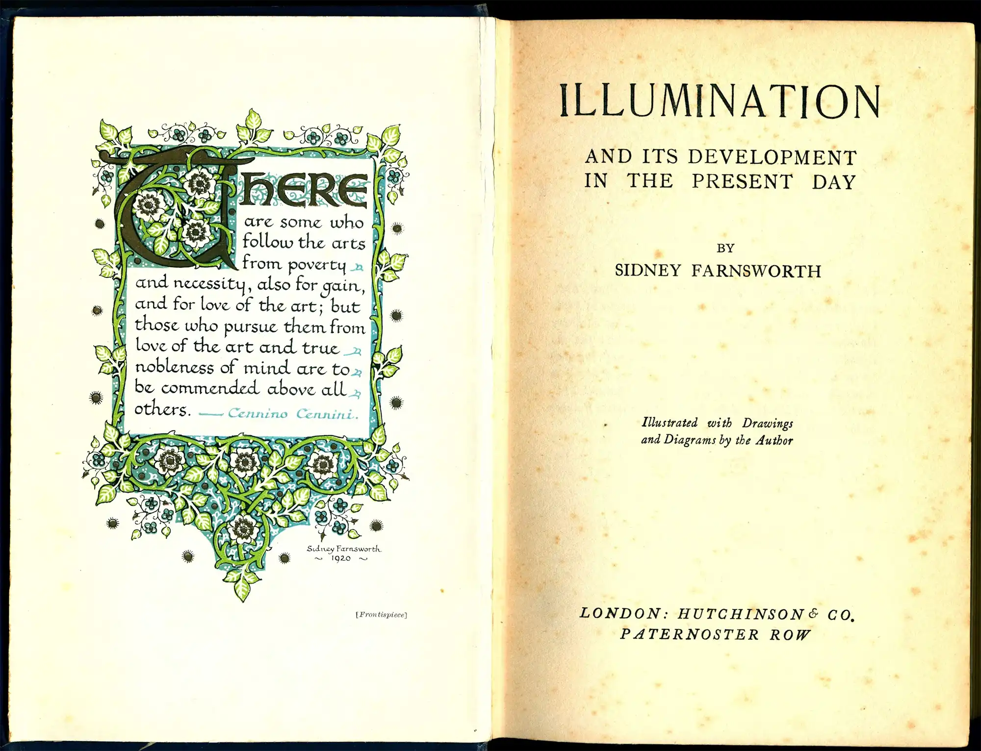 Sidney Farnsworth. Illumination and its development in the present day. London: Hutchinson, 1922. Sidney Farnsworth. Illumination and its development in the present day. London: Hutchinson, 1922. Open image in new window