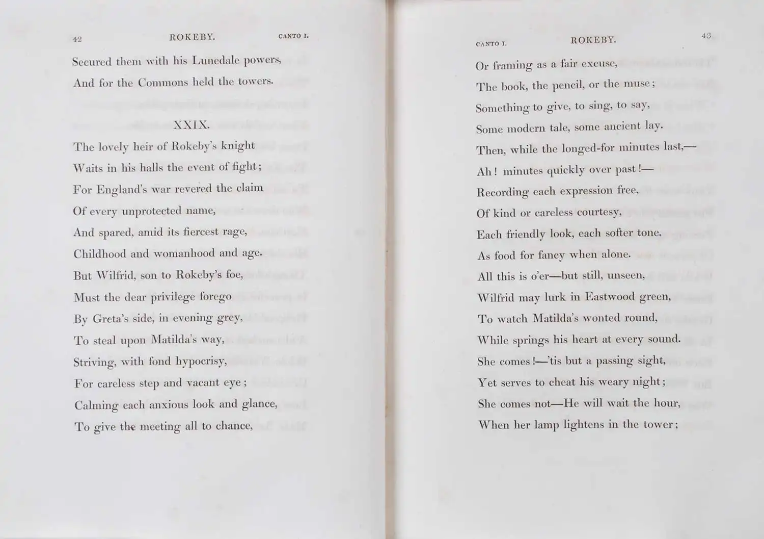 Sir Walter Scott. Rokeby: a poem. [1st edition]. Printed for John Ballantyne and Co., Edinburgh; and Longman, Hurst, Rees, Orme, and Brown, London; by James Ballantyne and Co., Edinburgh, 1813.