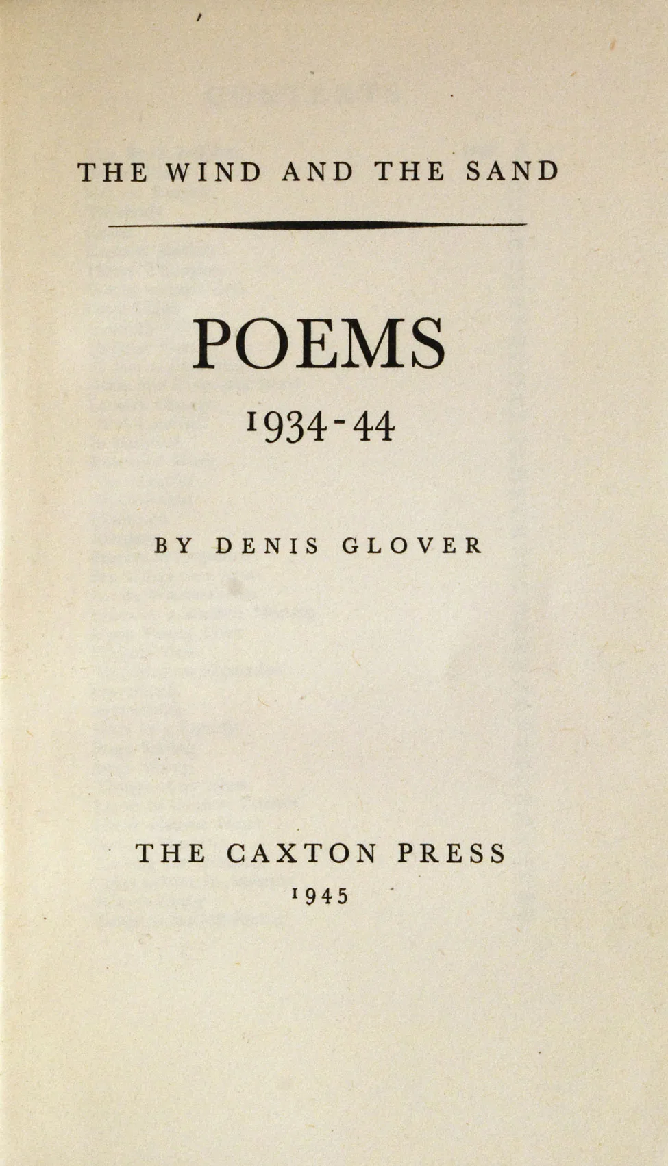 Denis Glover. The Wind and the Sand. Christchurch: The Caxton Press, 1945.