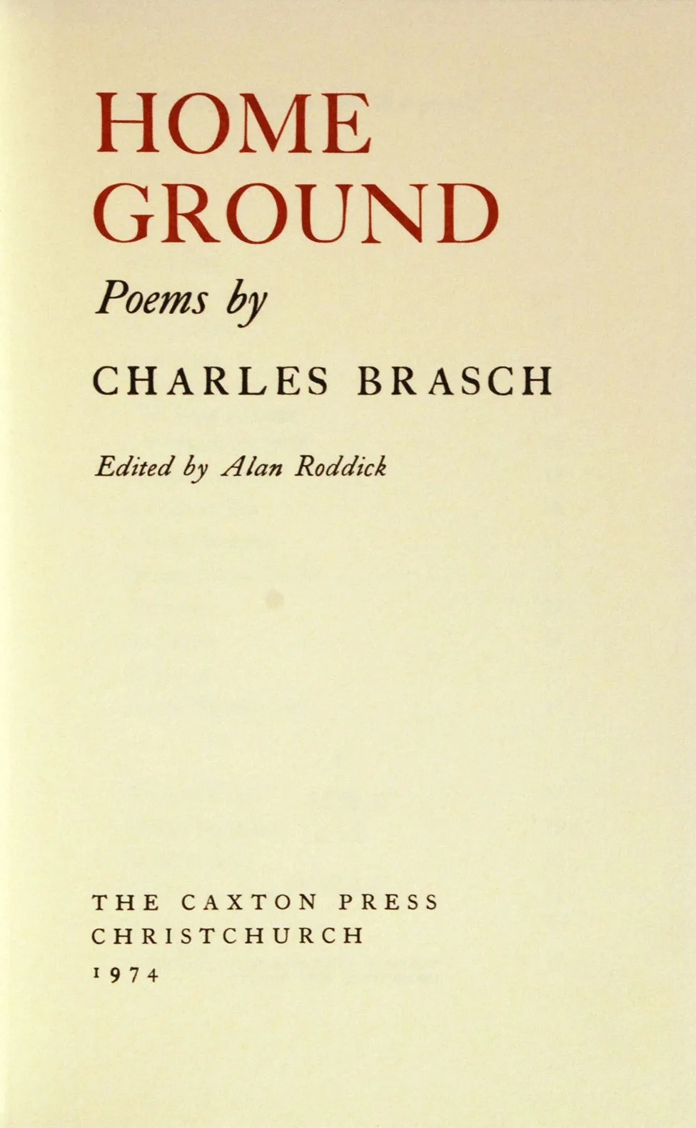 Alan Roddick (ed.). Home Ground: Poems by Charles Brasch. Christchurch: The Caxton Press, 1974.