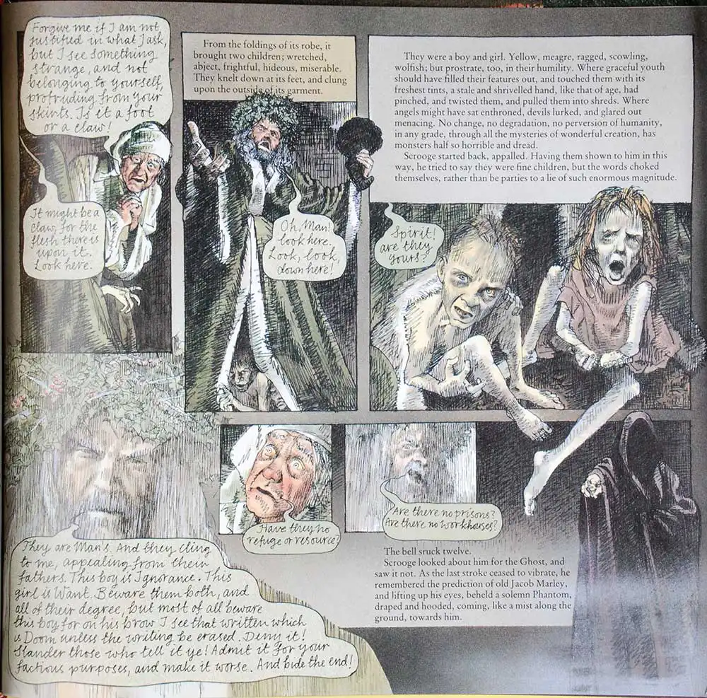 Although not written specifically for children, Charles Dickens’ A Christmas carol has long been considered a worthy moral story for the perusal of younger folk, with its simple emphasis on Scrooge’s choice between a benevolent life and a selfish one. Dickens believed a deeply-felt Christmas story with themes of poverty and social injustice was a more effective way of reaching a wide audience than through polemical pamphlets and essays. A Christmas carol can be read as a simple morality tale composed with pathos and an underlying theme of redemption.