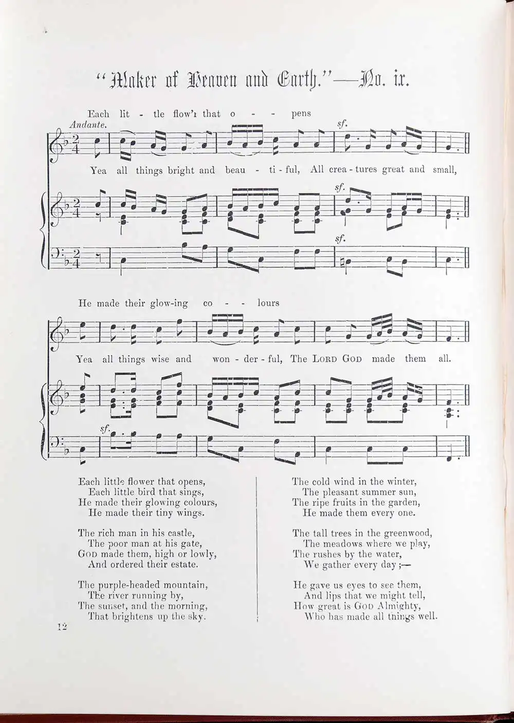 Cecil Francis Alexander (words) Henry J. Gauntlett (music). Hymns for little children. London: W. Walker, [1877?]