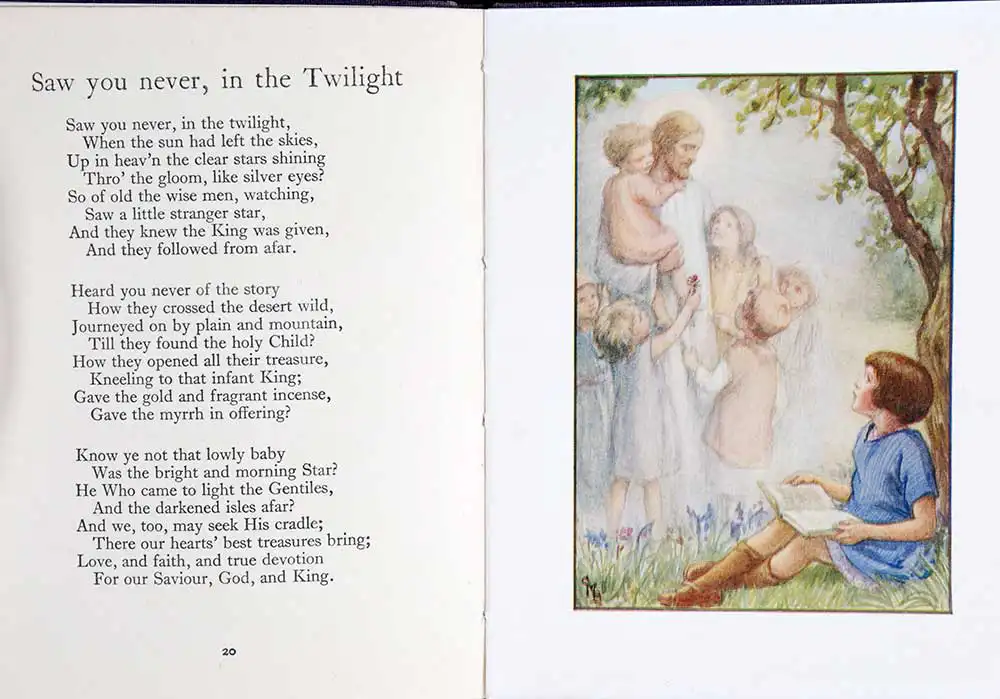 illustrated two Christian-themed children’s books, The children’s book of hymns (1929) and The little picture hymn book (1933).