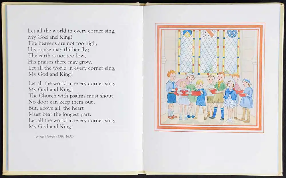 Elizabeth Laird (compiler). Hymns for children. Illustrated by Margaret Tempest. London: Collins, 1988.