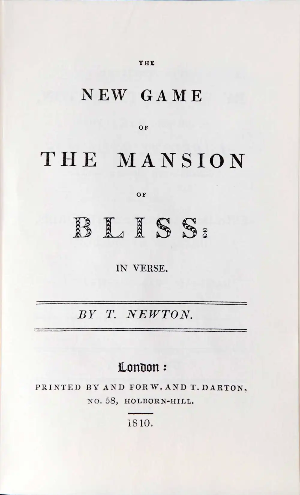 T. Newton. The new game of the mansion of bliss: in verse. London: Bodley Head, 1981.