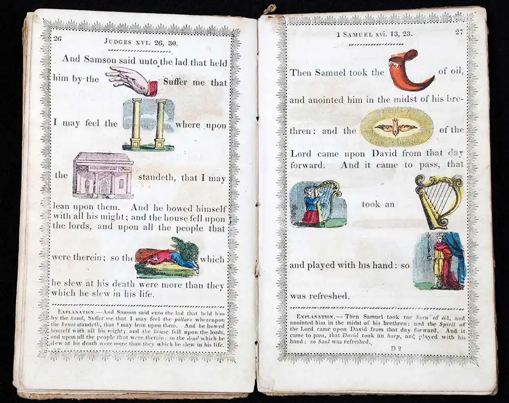 nineteenth century English hieroglyphic Bible printed by Robert Harrild of