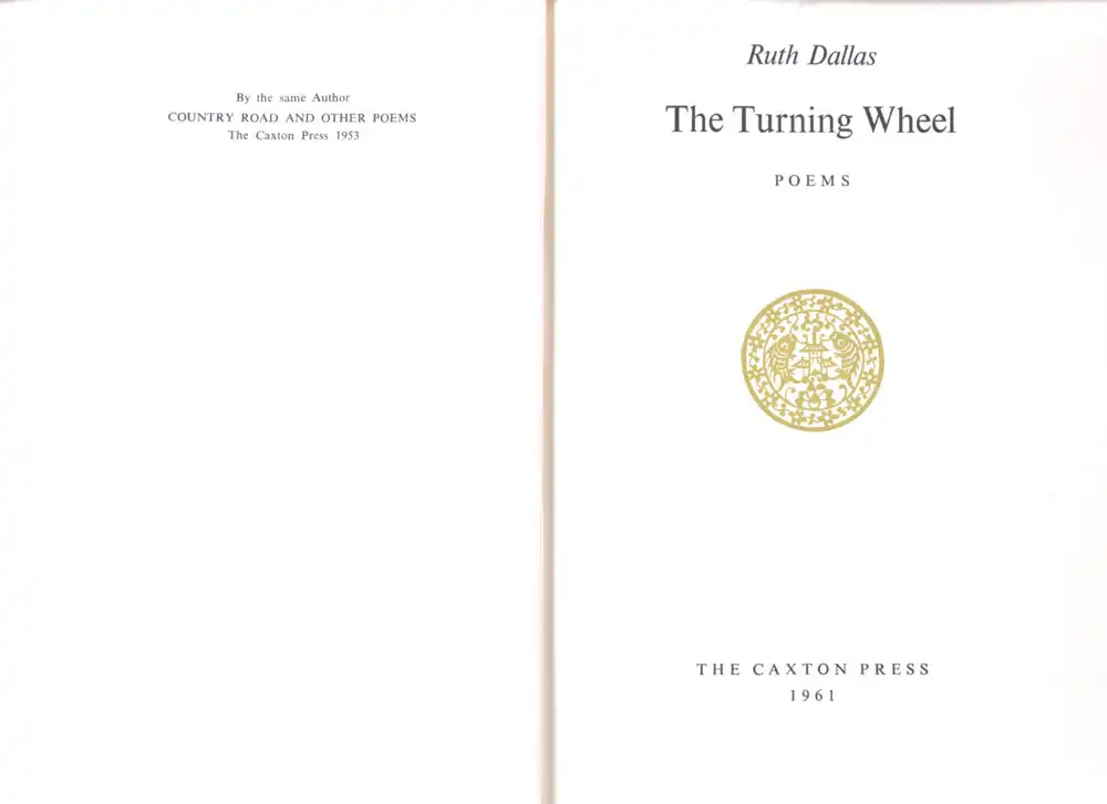 Ruth Dallas. The turning wheel: poems. Christchurch: Caxton Press, 1961.