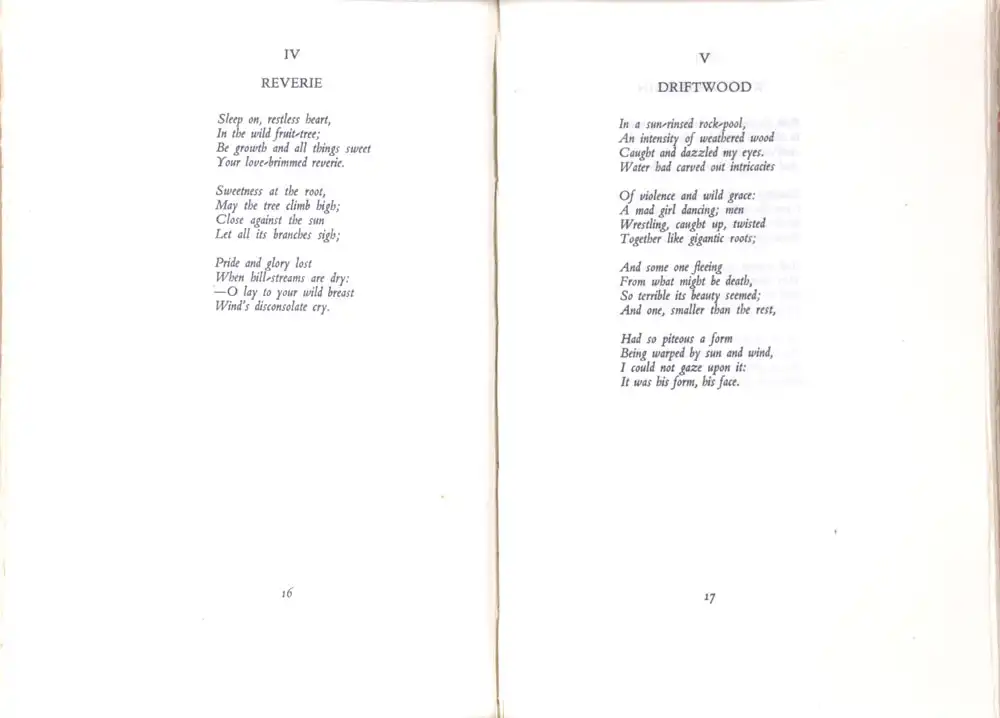 ‘Driftwood’ are two poems from his first collection of verse Mine eyes dazzle.