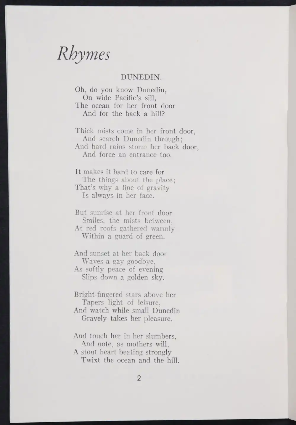 Richards Allen, and contains the poem ‘Dunedin from Littlebourne.’
