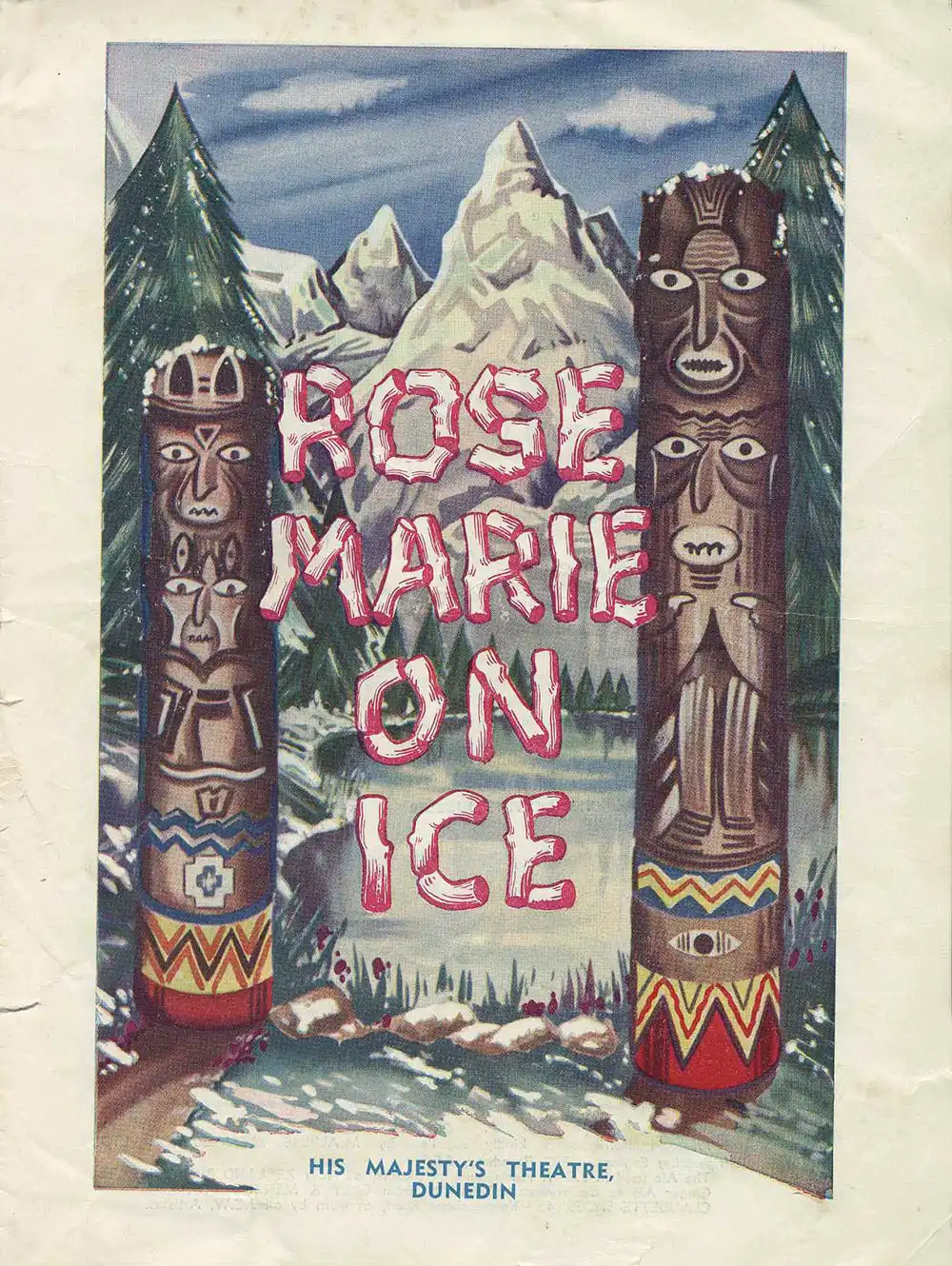 <em>Rose Marie on ice</em>. Book and lyrics by Otto Harbach and Oscar Hammerstein II; music by Rudolph Friml and Herbert Stothart. (J.C. Williamson Ltd.). His Majesty’s Theatre, Dunedin, July 13, 1955.