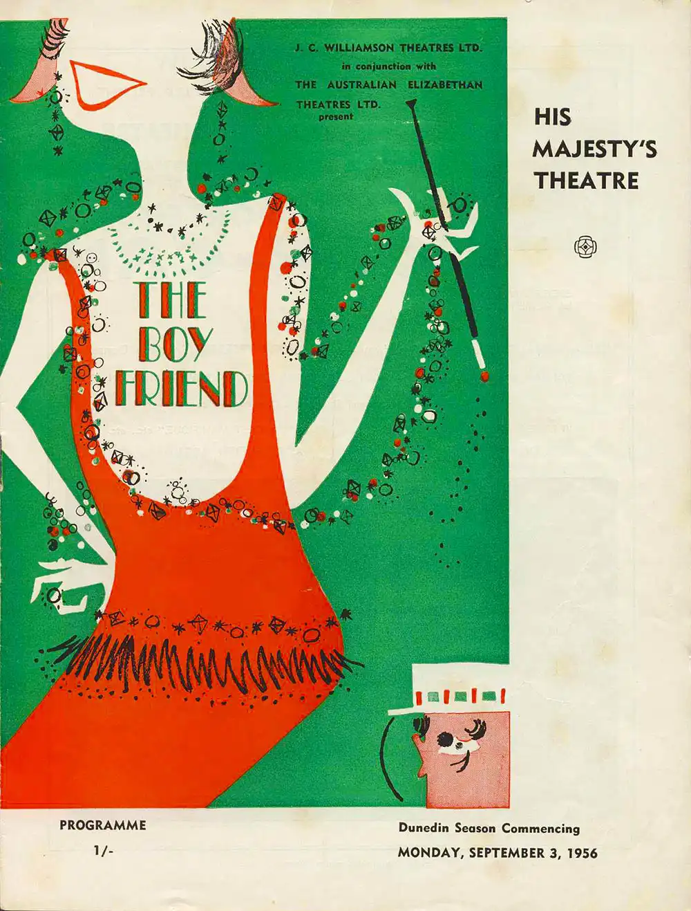 <em>The boy friend</em>. Book, lyrics and music by Sandy Wilson. (J.C. Williamson Ltd.) His Majesty’s Theatre, Dunedin, Sept. 3, 1956.