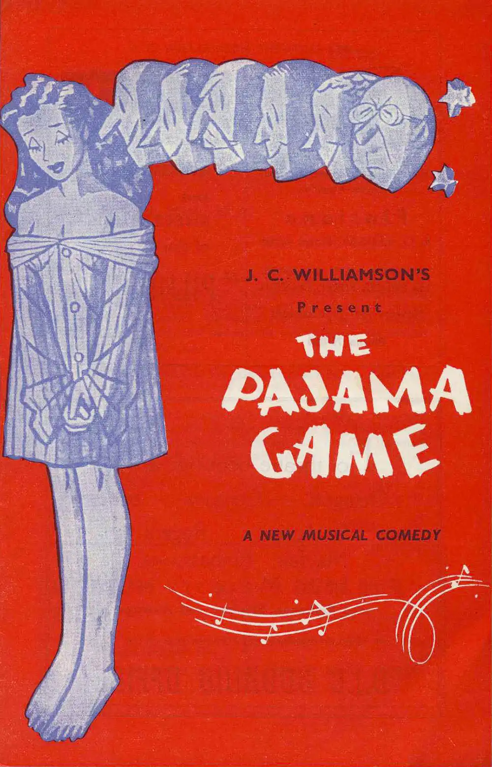 <em>The pajama game</em>. Book by George Abbot and Richard Bissell; music and lyrics by Richard Adler and Jerry Ross. (J.C. Williamson Ltd.). His Majesty’s Theatre, Dunedin, Apr. 11, 1958.