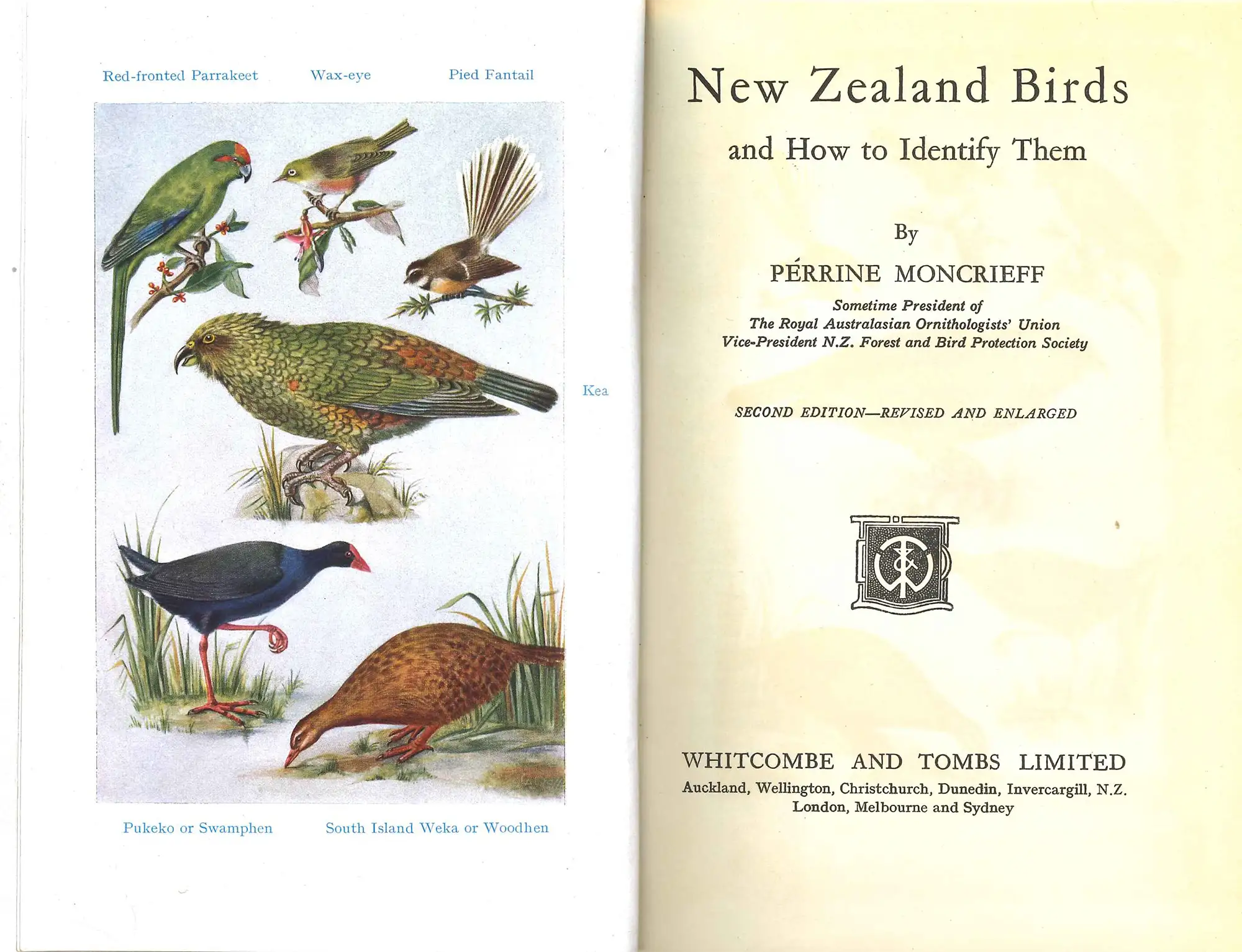 Perrine Moncrieff. New Zealand birds and how to identify them. 2nd ed. Auckland: Whitcombe and Tombs, 1936.