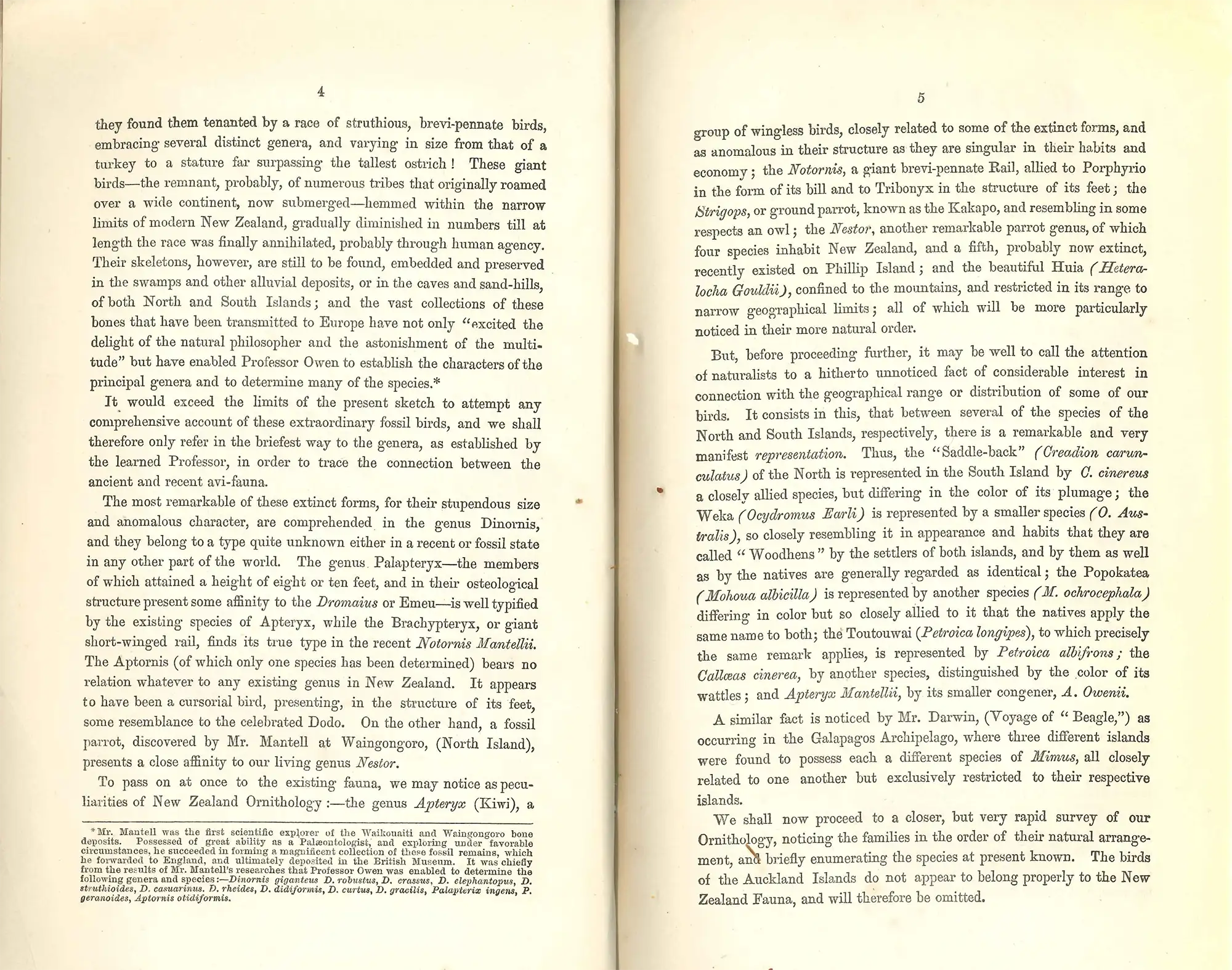 The first published list of the birds of New Zealand was drawn up by George Robert Gray (1808-72) of the British Museum and appeared in 1843 as an Appendix to Dieffenbach’s two-volume Travels in New Zealand. Dieffenbach’s Travels was one of the more reliable early accounts of New Zealand’s natural environment and Māori culture.