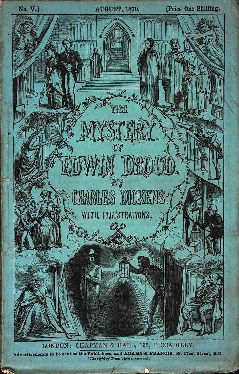 Front cover of The Mystery of Edwin Drood No. V, August 1870, illustrated by Luke Fildes