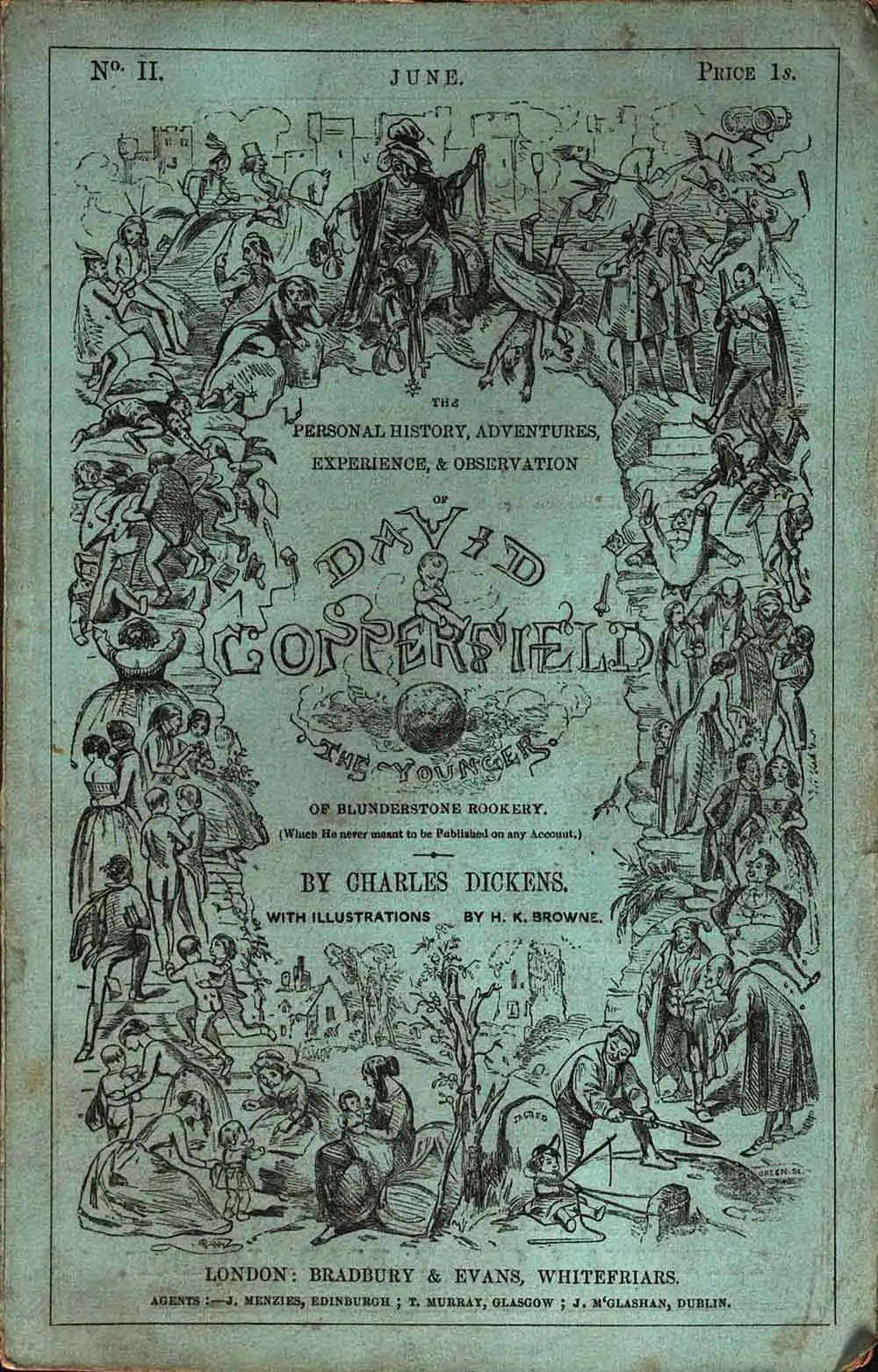 The Personal History, Adventures, Experience & Observation of David Copperfield … with Illustrations by H. K. Browne. 20 numbers in 19 monthly parts. London: Bradbury & Evans, 1849–1850