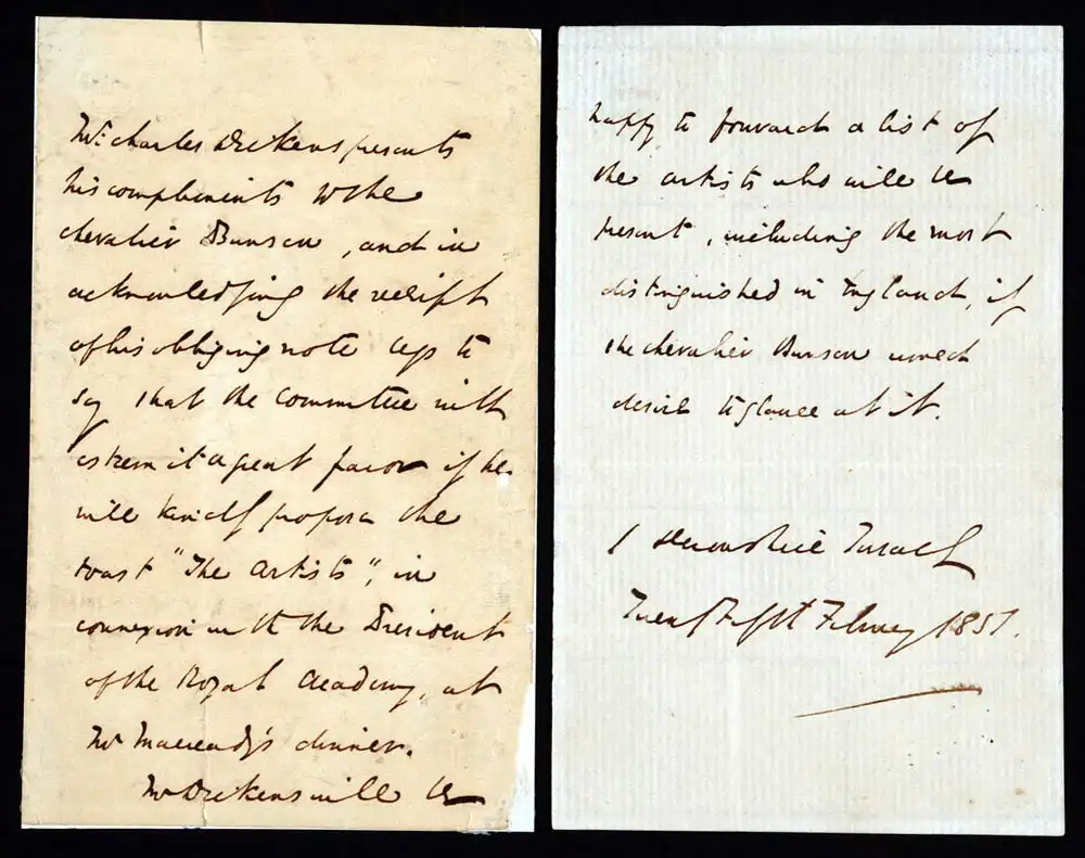 Letter (in third person). Charles Dickens to Christian Karl Josias, Baron Bunsen, 1 Devonshire Terrace, 25 February 1851