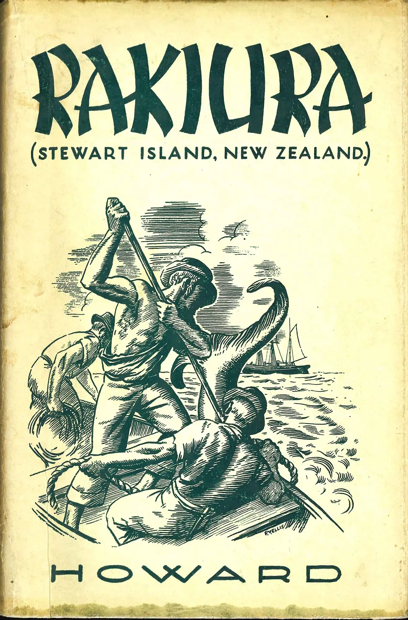 Rakiura is the centennial history of Stewart Island published in 1940, written by Basil Howard (1898-1974), a local historian and teacher at King’s High School, Dunedin. The jacket design is by Frederick Vincent Ellis (1892-1961), an artist and art teacher known for his stained-glass window designs.