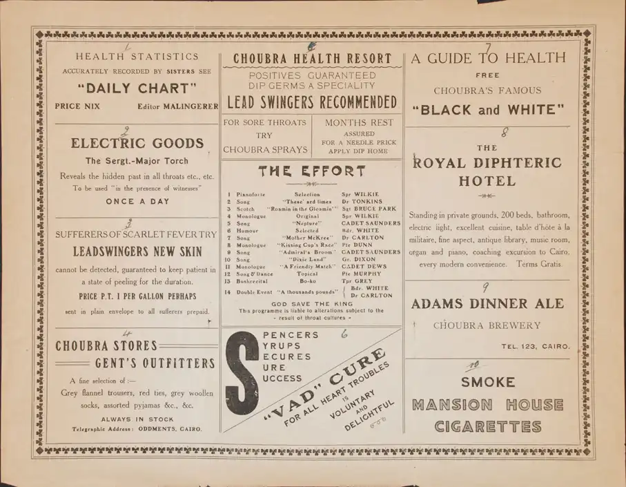 An Effort by the Positive Dips. Programme. Choubra Military Hospital, Cairo, Egypt, 27 May 1916 An Effort by the Positive Dips. Programme. Choubra Military Hospital, Cairo, Egypt, 27 May 1916 Open image in new window