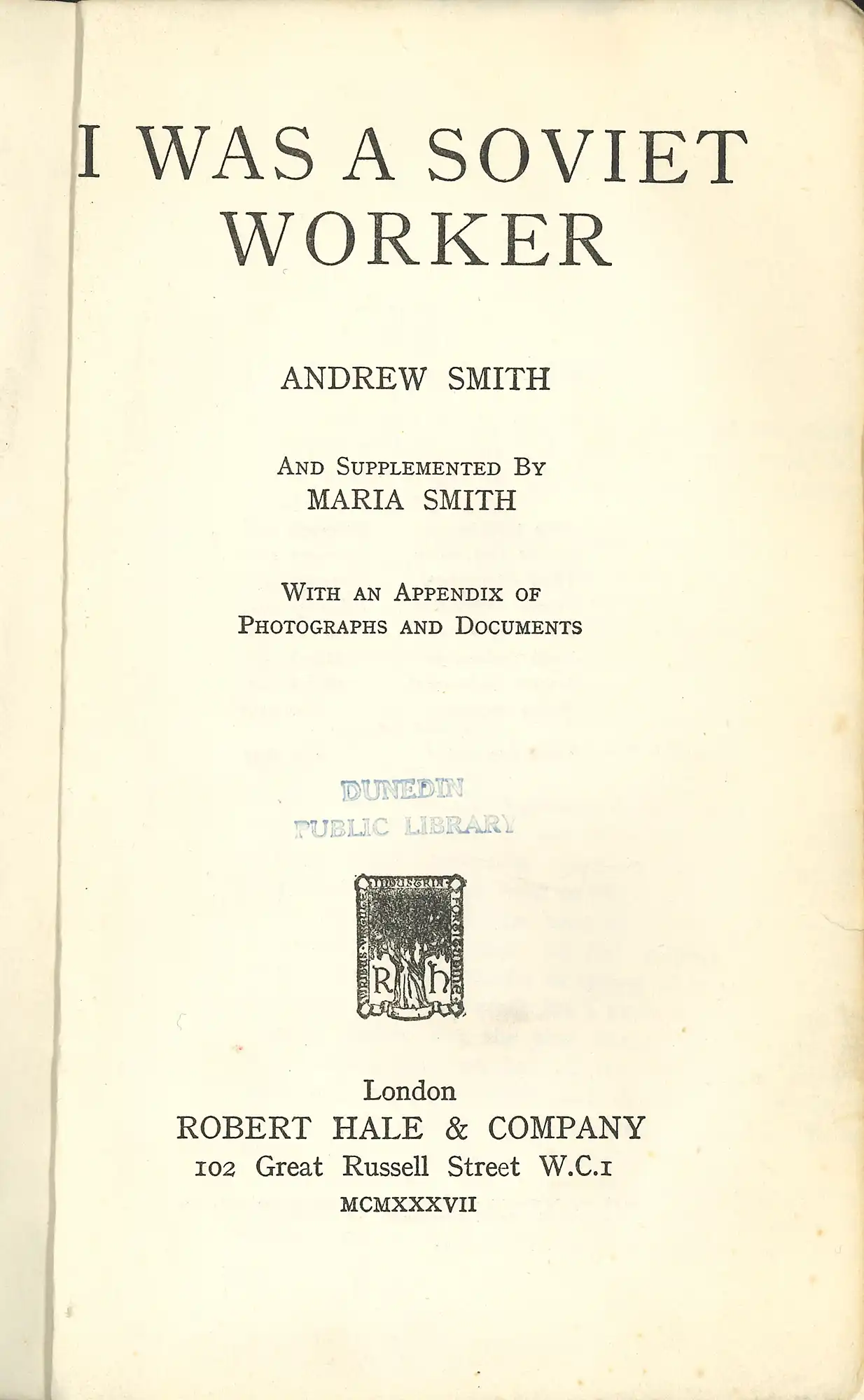 Andrew Smith, I was a Soviet worker. London: Robert Hale, 1937. RBC 947.084 SMI
