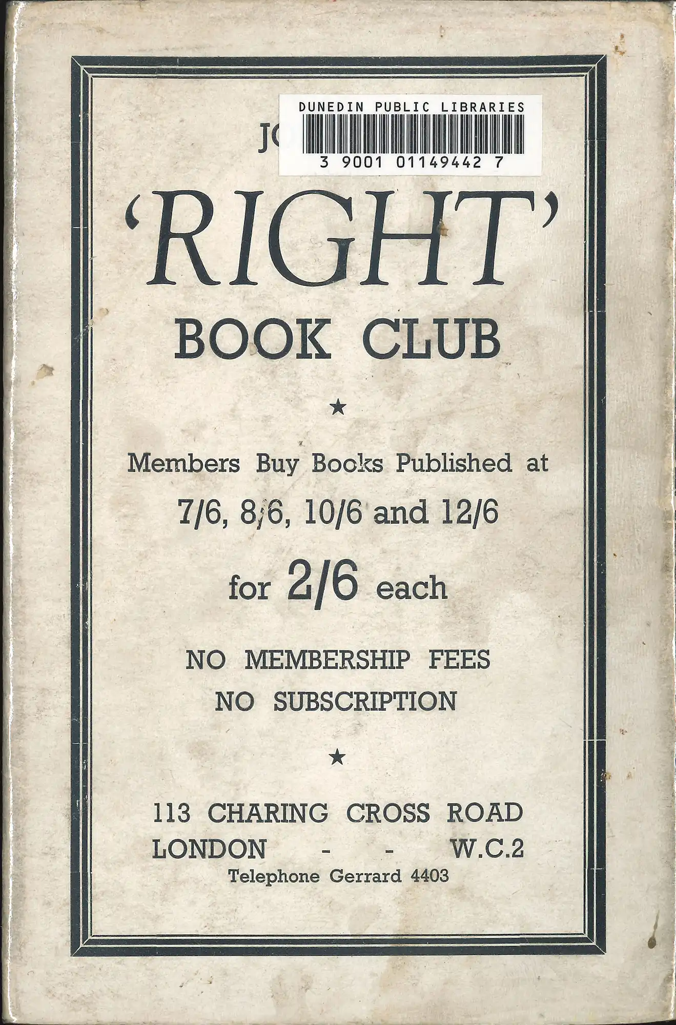 Journalist Sir Philip Gibbs (1877-1962) was a prolific writer who saw his Ordeal in England, a counter to Orwell’s Wigan Pier, reprinted by the RBC in 1937. They did another of his titles, Across the frontier (1939) proud. Attempting to get ‘at the heart of truth’, Gibbs deals with the division of ideas into different and sometimes hostile camps, fostering – without reason and common sense – dangers of war and revolution. The back of the book provided an excellent vehicle for promotion – the bar-code hiding the imperative: ‘Join the’.