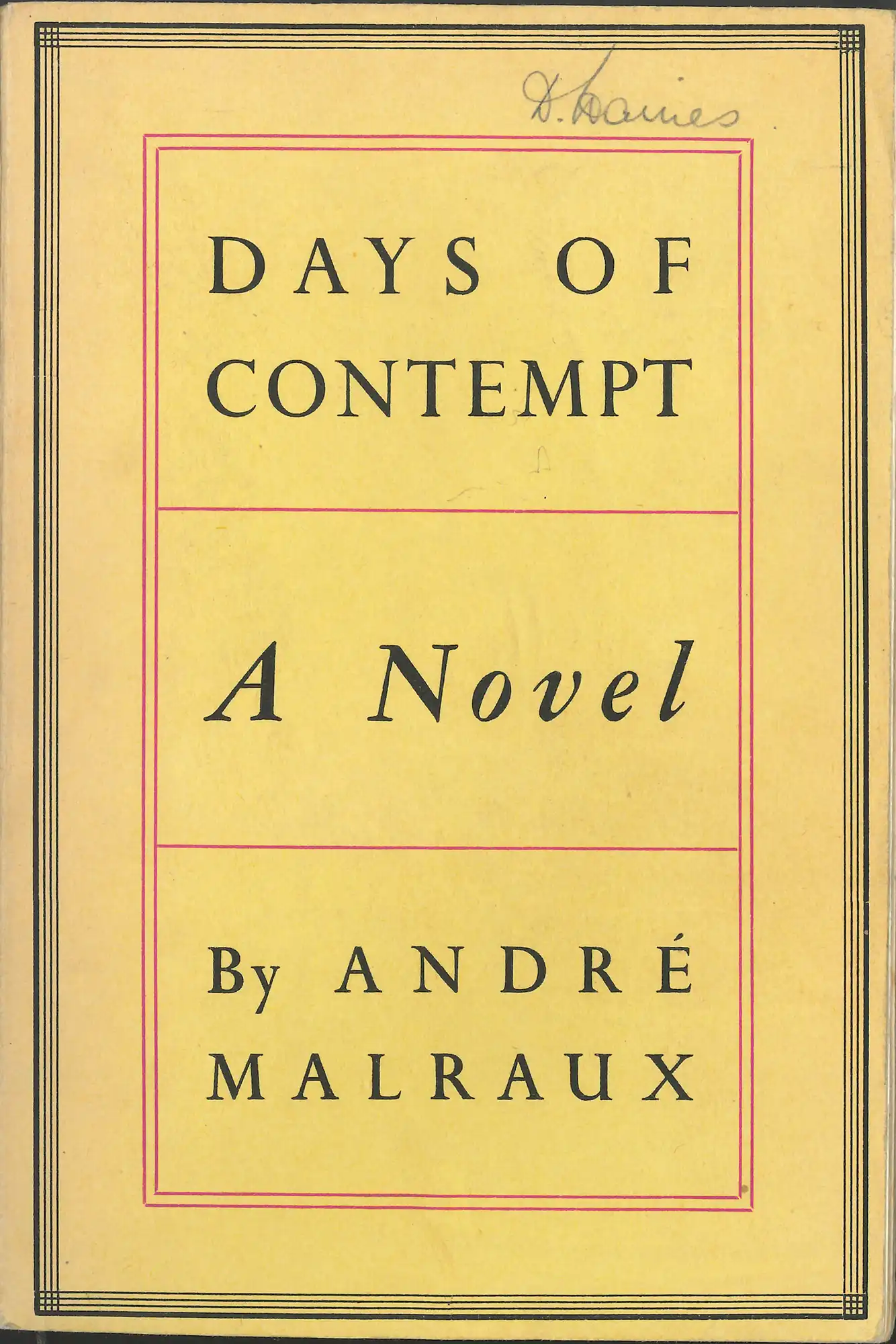 André Malraux, Days of contempt. (1936). LBC 843 MAL