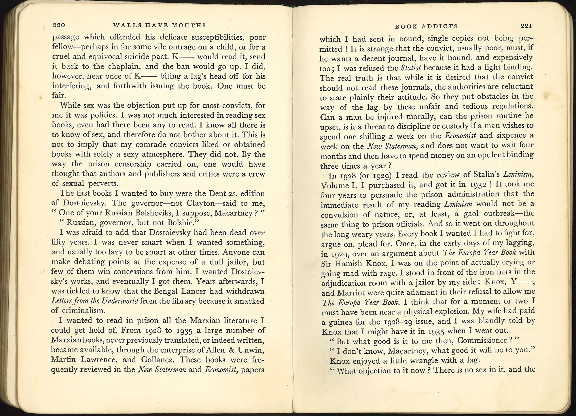 Wilfred Macartney, Walls have mouths: a record of ten years’ penal servitude. (1936). LBC 365 MAC