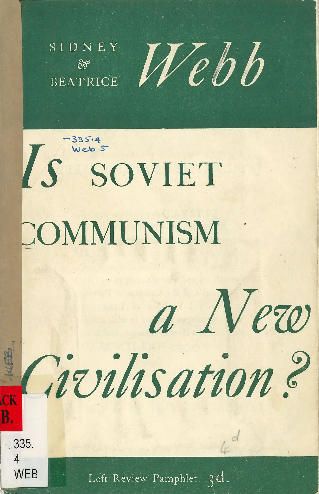 Sidney and Beatrice Webb, Is Soviet communism a new civilisation? London: Left Review Pamphlet, November 1936. 335.4 WEB