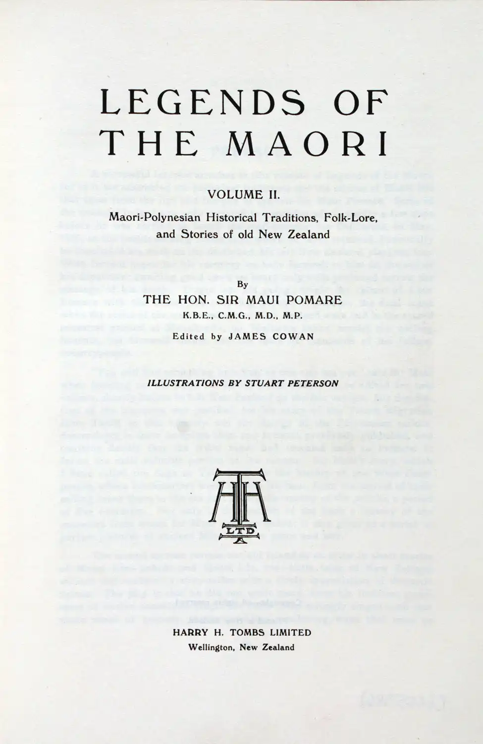 Hon. Sir Maui Pomare and James Cowan. Legends of the Maori. Wellington: Fine Arts (N. Z.) Ltd., 1930. Two volumes.