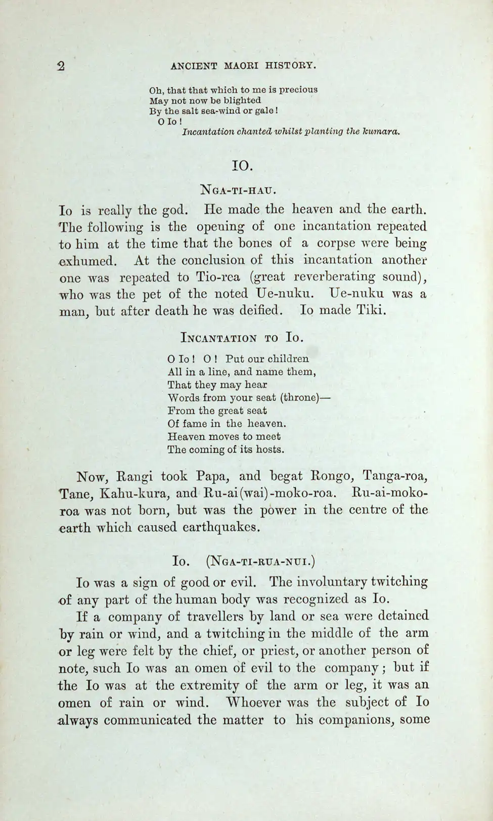 John White. The Ancient History of the Maori, His Mythology and Traditions. Wellington: George Didsbury, 1887. Six volumes, volume two displayed. Open image in new window