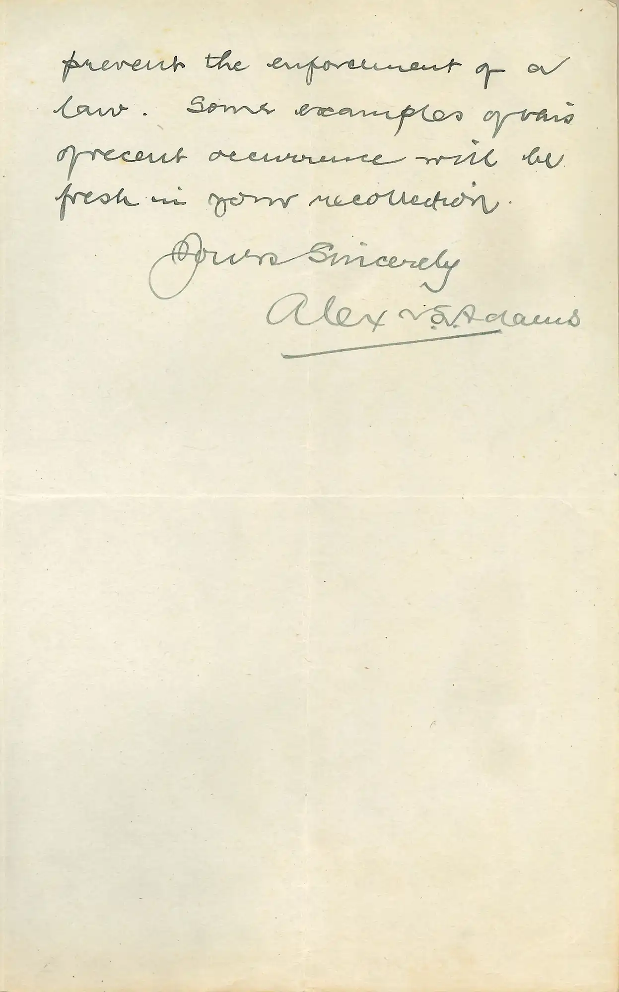 The Honourable Mr Justice Alexander Samuel Adams (1861-1937). Letter from Adams, Judge’s Chambers, Auckland, to Mr Macgregor, 3 August 1921.