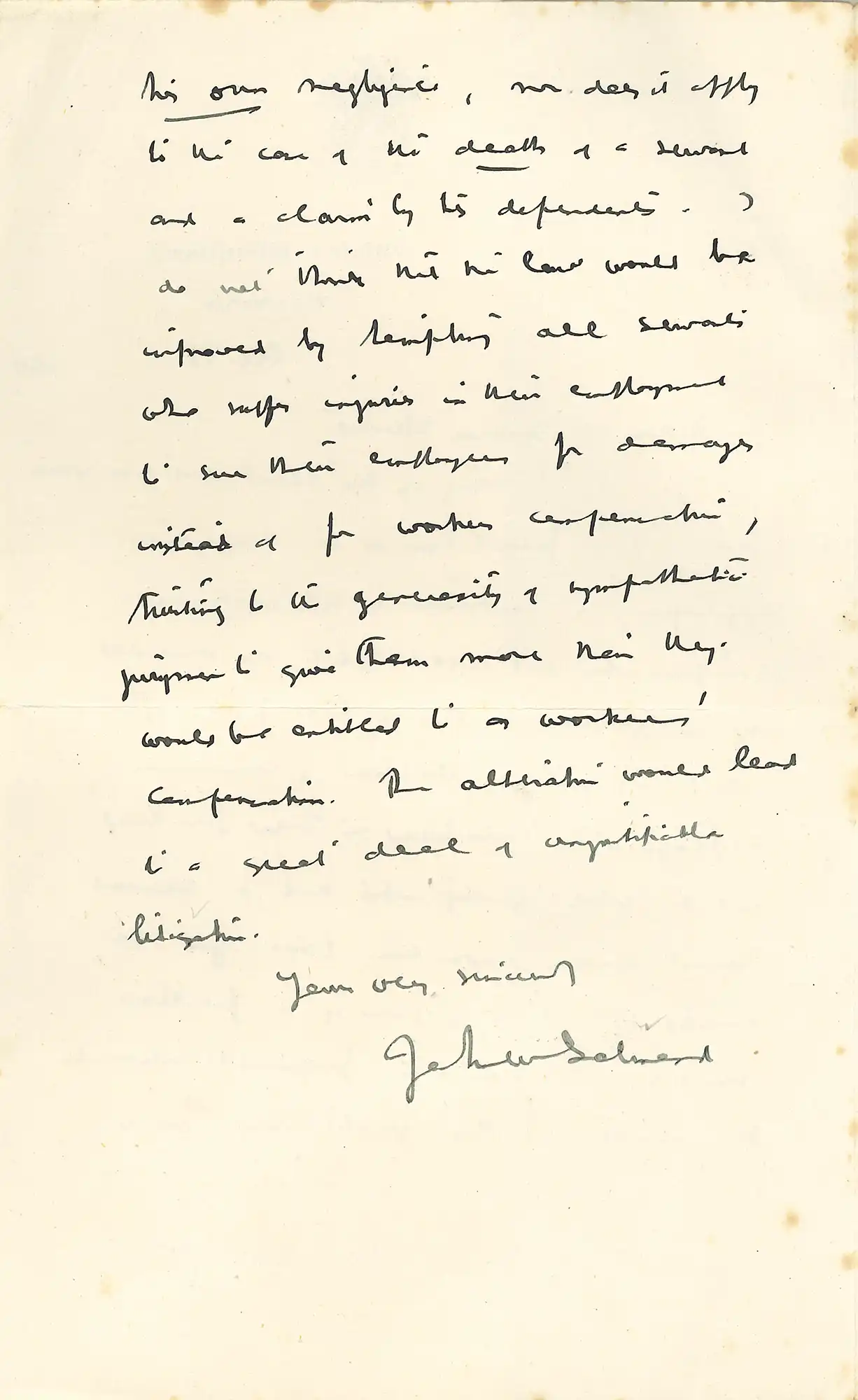 The Honourable Sir John William Salmond (1862-1924). Letter from Salmond, Judge’s Chambers, Wellington, to William Downie Stewart, 18 October 1920.