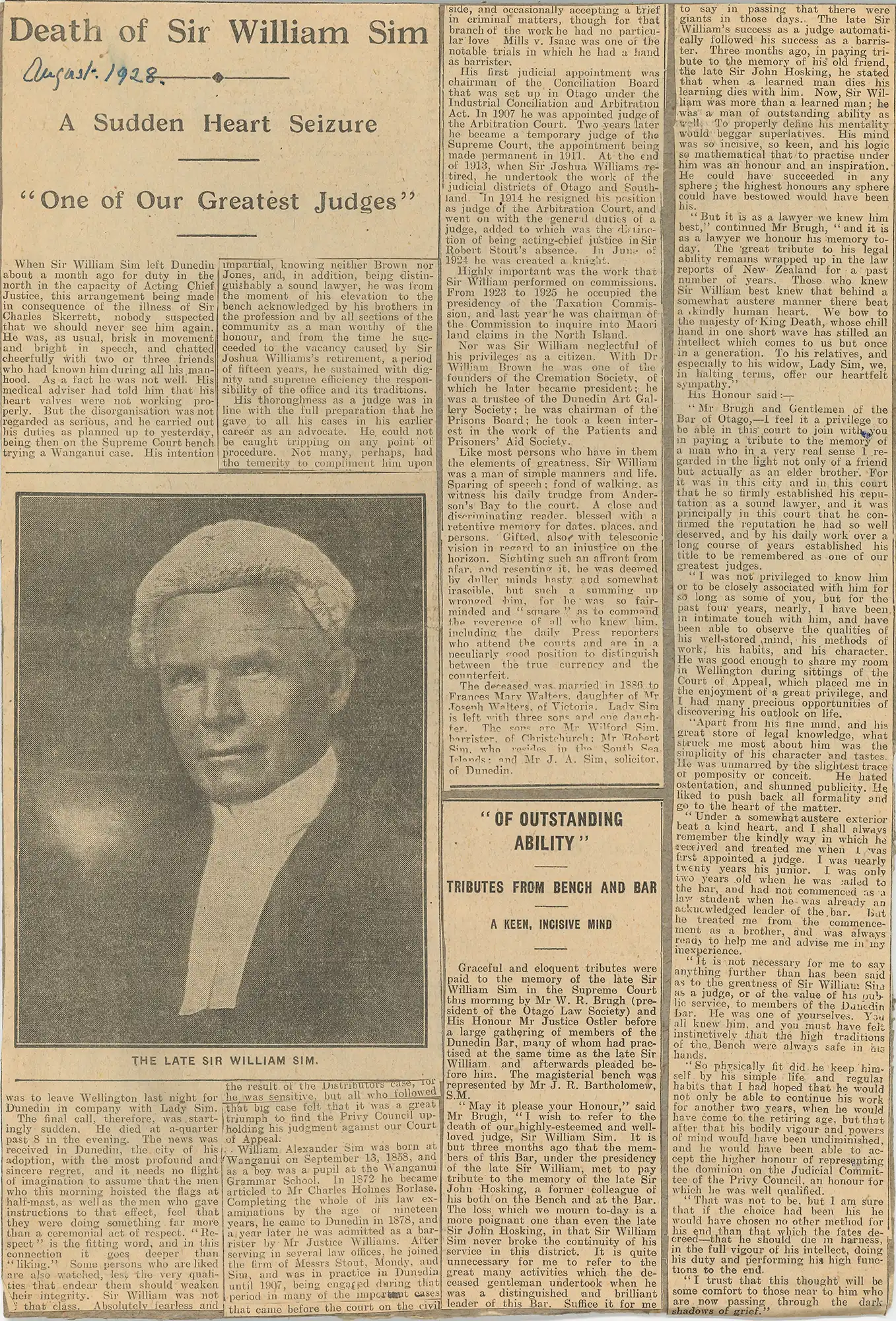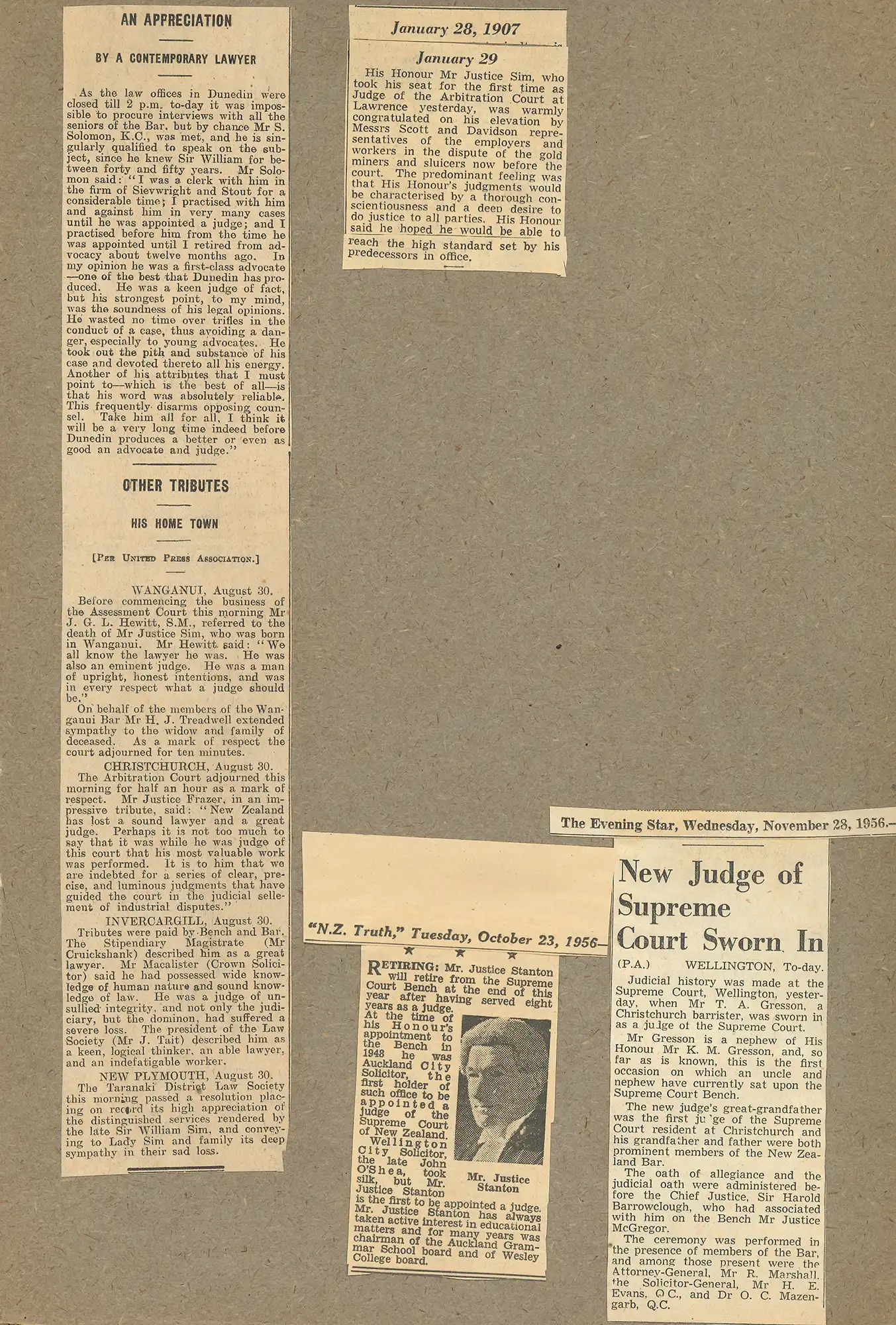 The Honourable Sir William Sim (1858-1928). Various newspaper cuttings.