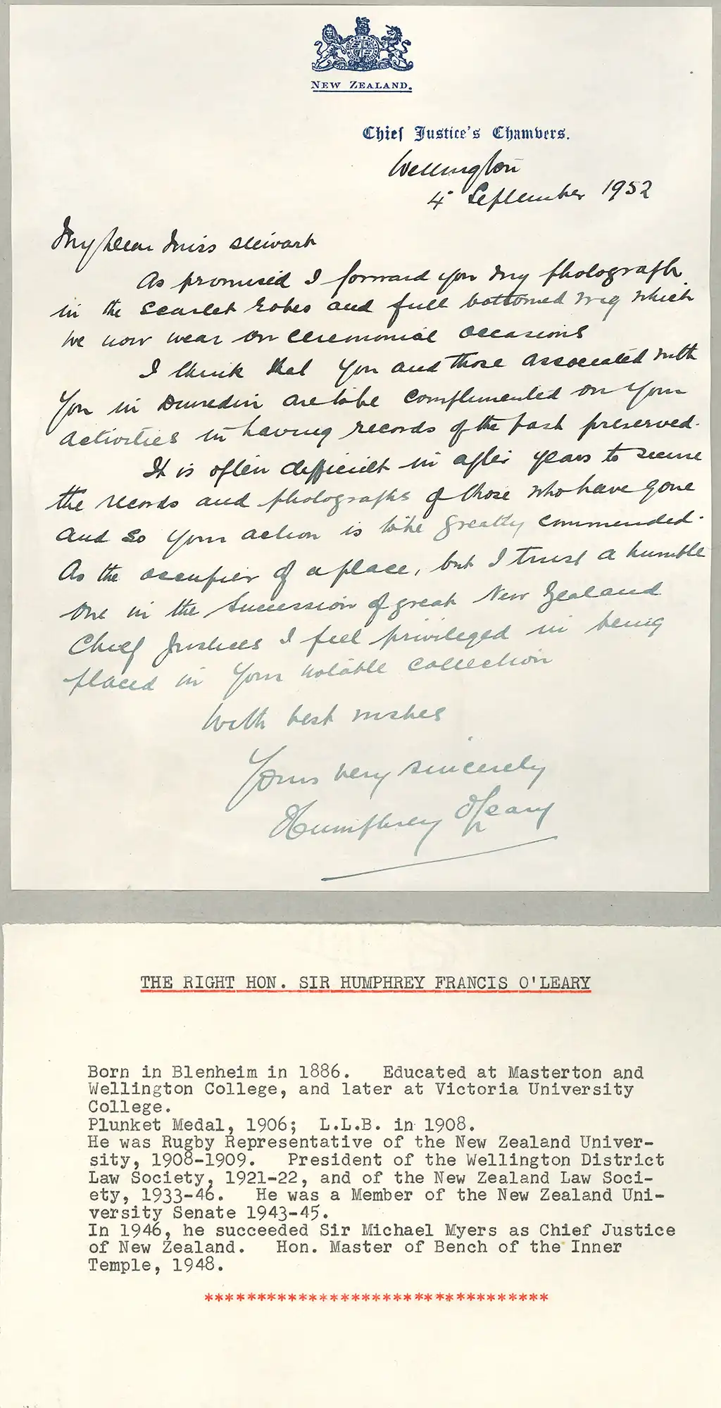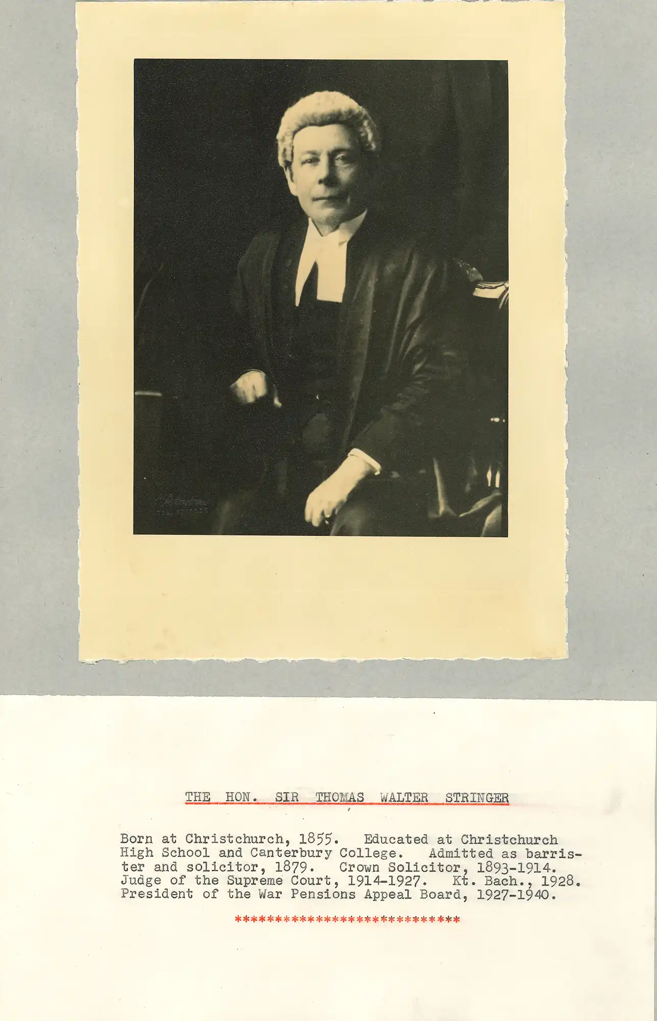 Chief Justice the Honourable Sir Francis Humphrey O’Leary (1886-1953). Portrait photograph.
