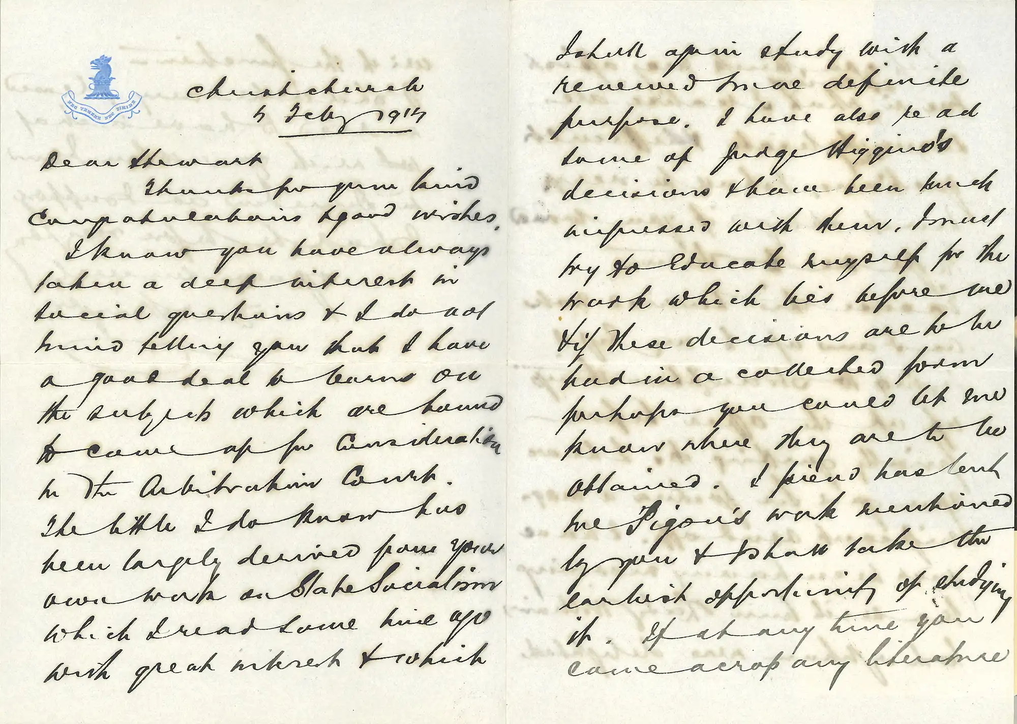 The Honourable Sir Thomas Walter Stringer (1855-1944). Letter from Stringer to William Downie Stewart, 4 February 1914.