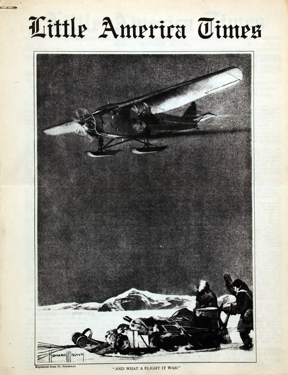 Published from 1933 to 1935, Little America Times offered its readers illustrations, photographs, news items and stories, all in support of Rear Admiral Byrd and flyer Lincoln Ellsworth (1880–1951).