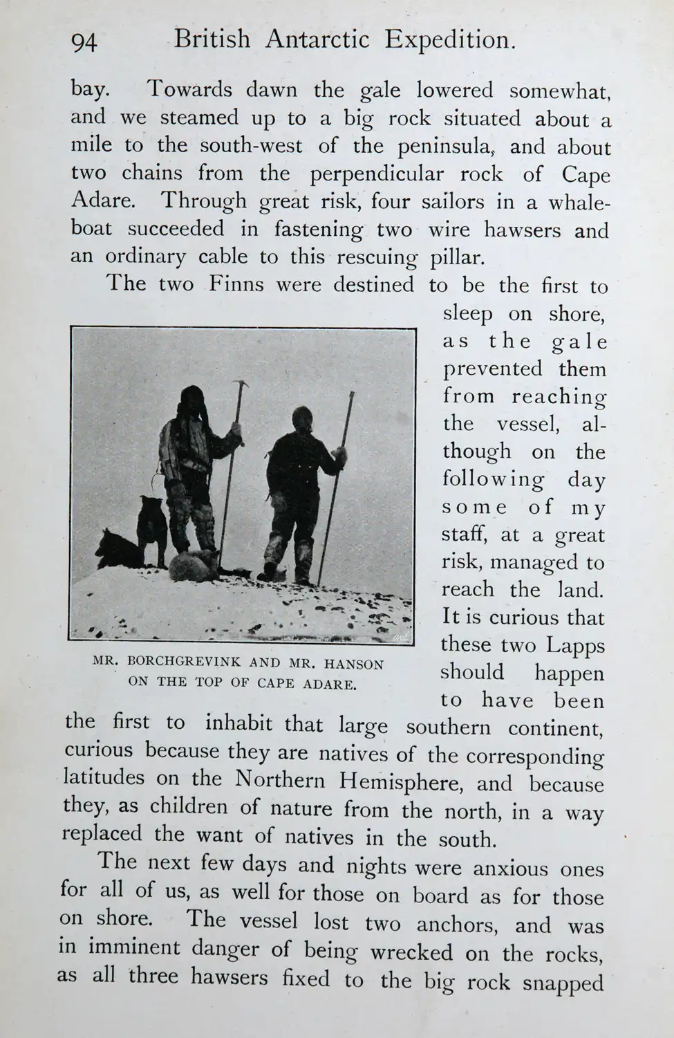 C. E. Borchgrevink. First on the Antarctic Continent: Being an Account of the British Antarctic Expedition 1898–1900. London: George Newnes, Limited, 1901.