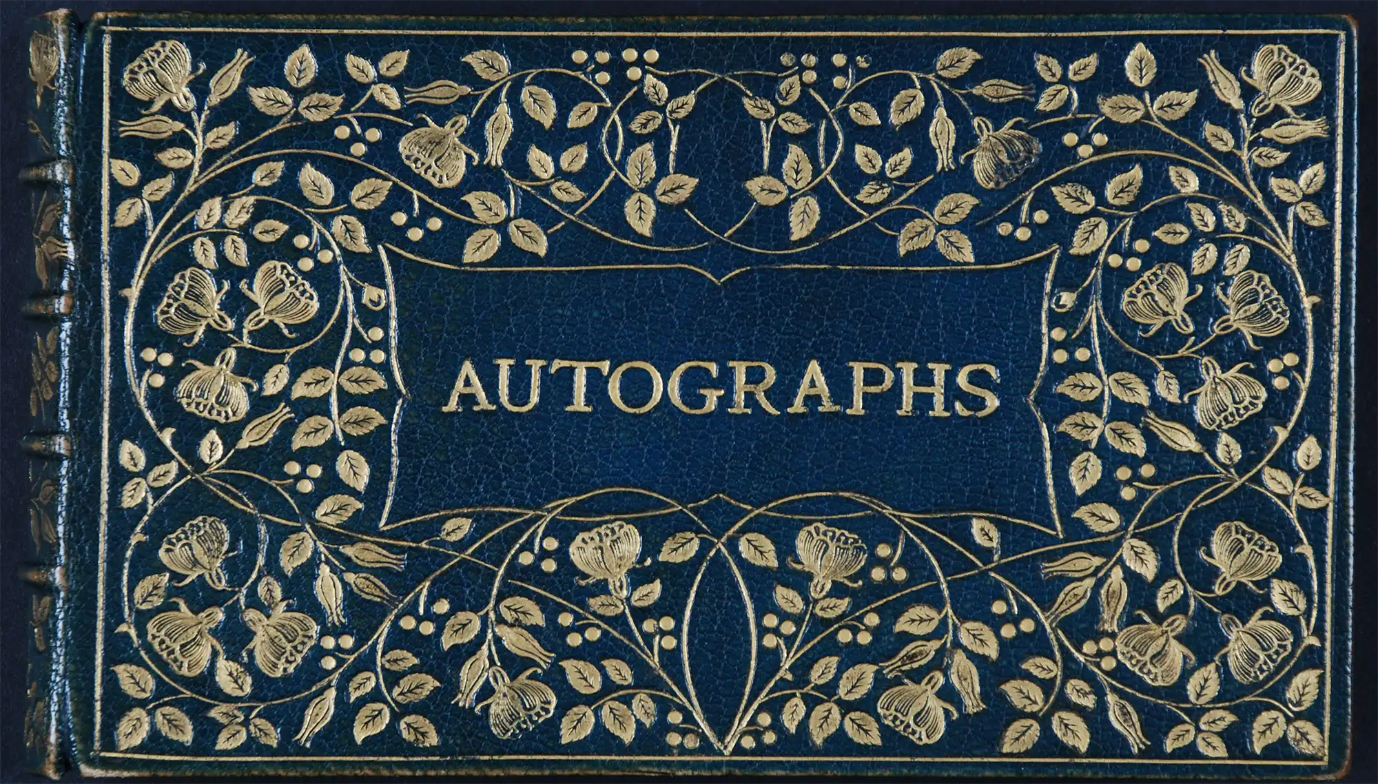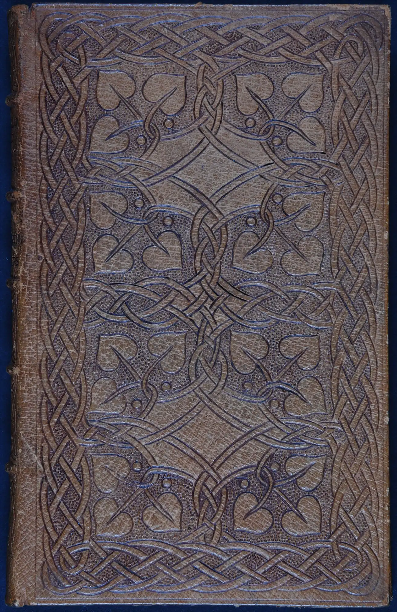 Three small fine leather bindings by Joachim are housed in the Reed Collection. This book has been bound in full brown morocco with gold tooling in a formal leaf design. It is signed M.E.J. on the leather at the base of the back pastedown.
