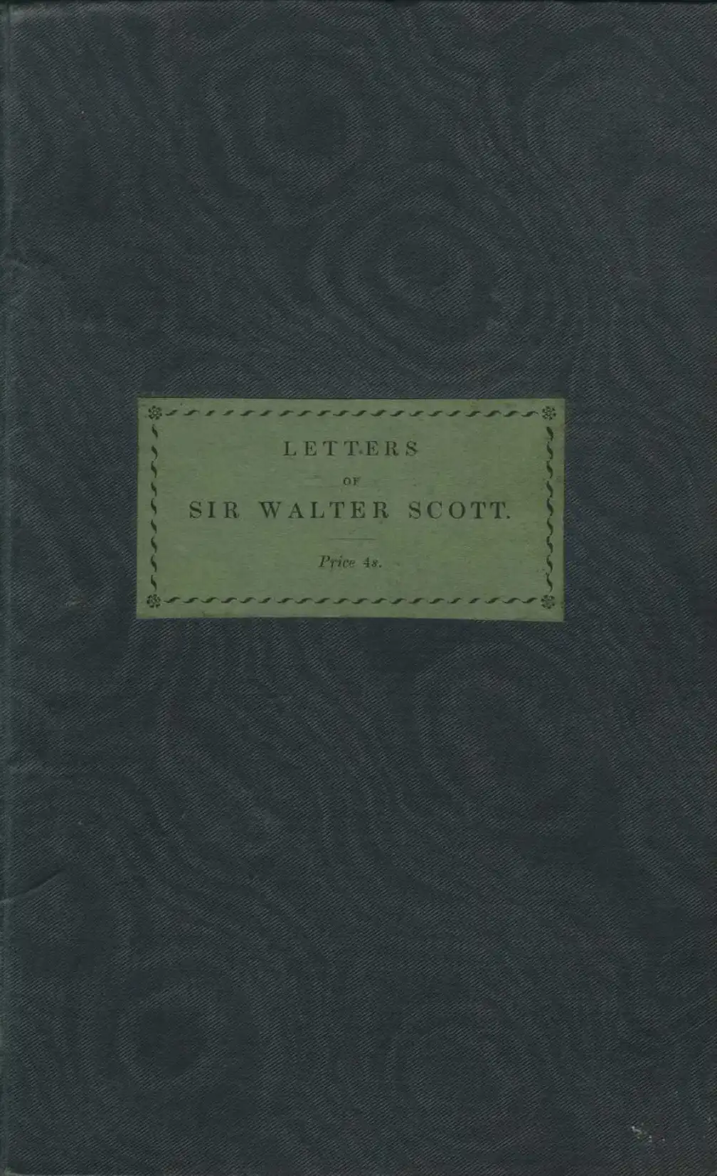 Bound in dark watered-green fine diagonal-ribbed cloth with paper label on the front cover, this copy of Scott’s Letters is a typical example of an early cloth binding. Early cloths tended to be plain and dark in colour. Paper labels on the spine or cover increasingly gave way to gold-blocking throughout the 1830s and 1840s.