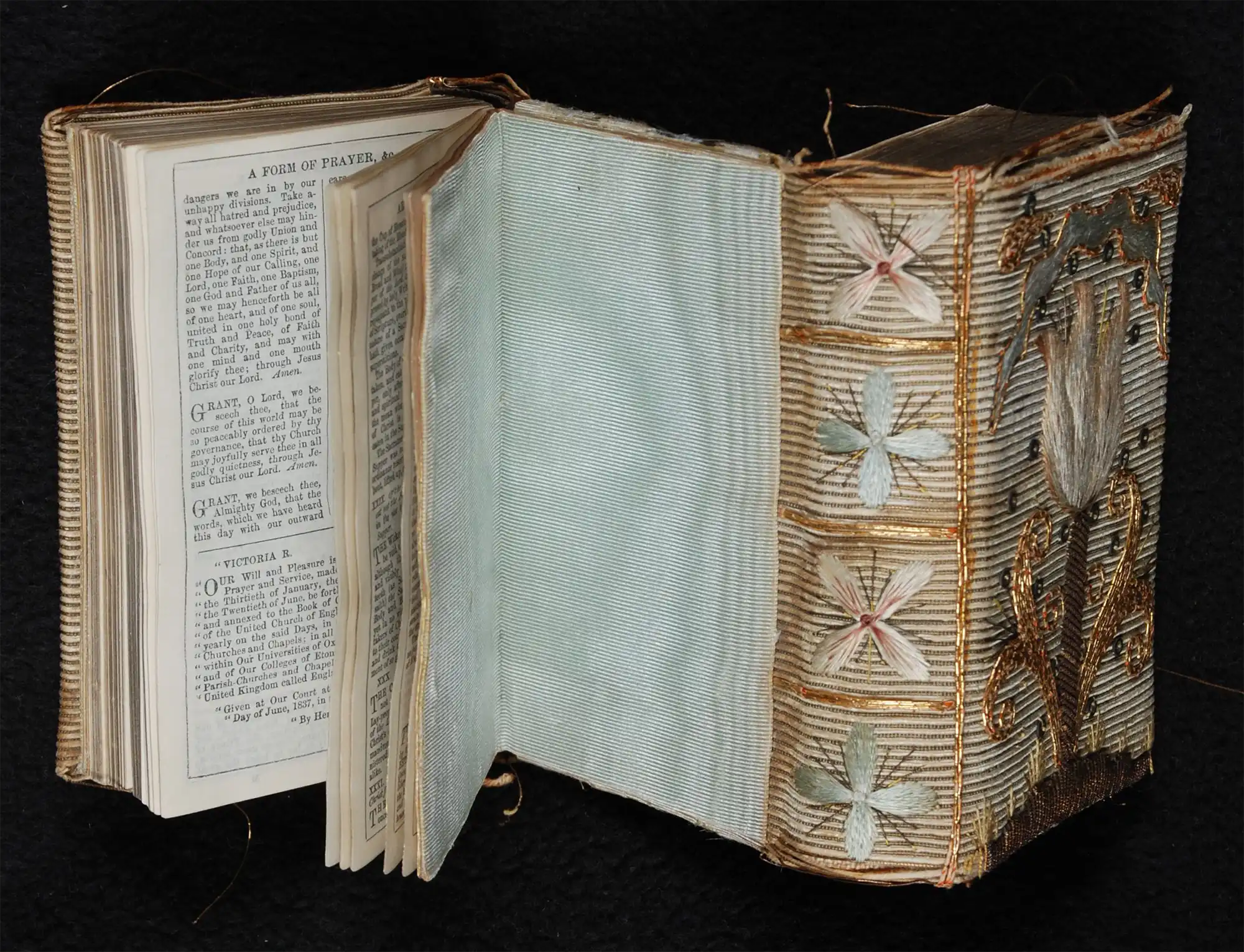 Embroidered bindings were present throughout sixteenth century England, into the first half of the seventeenth century, when there was a considerable vogue for small format devotional books with embroidered covers.