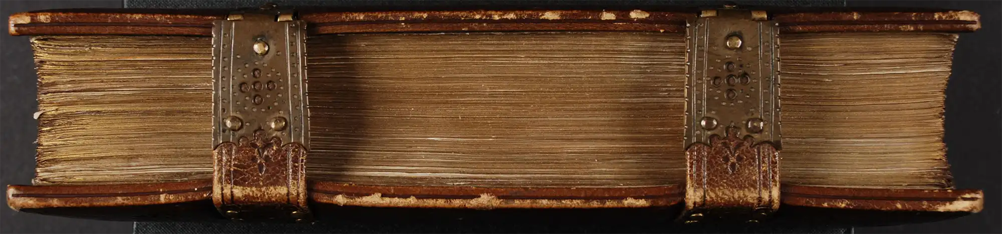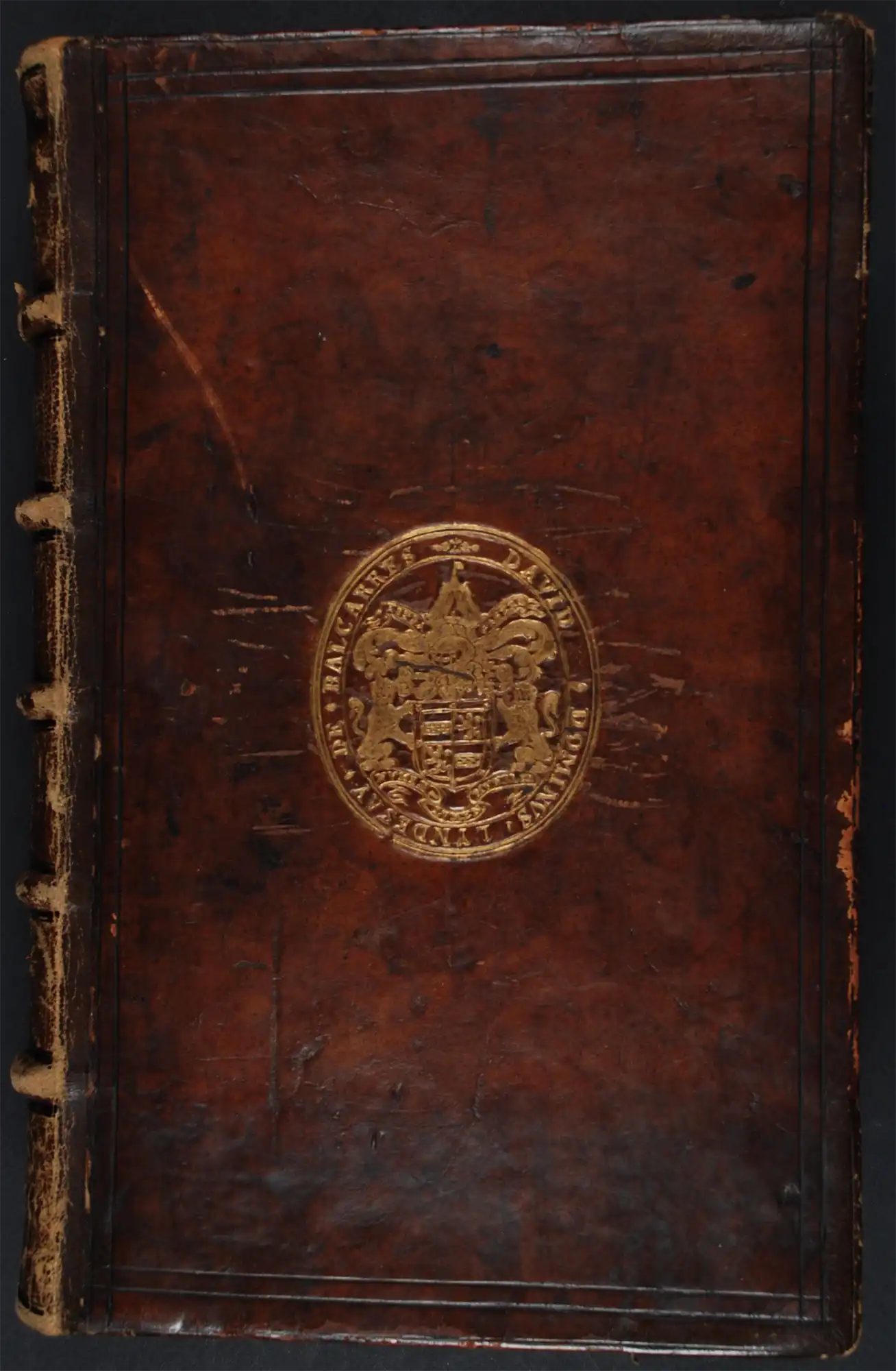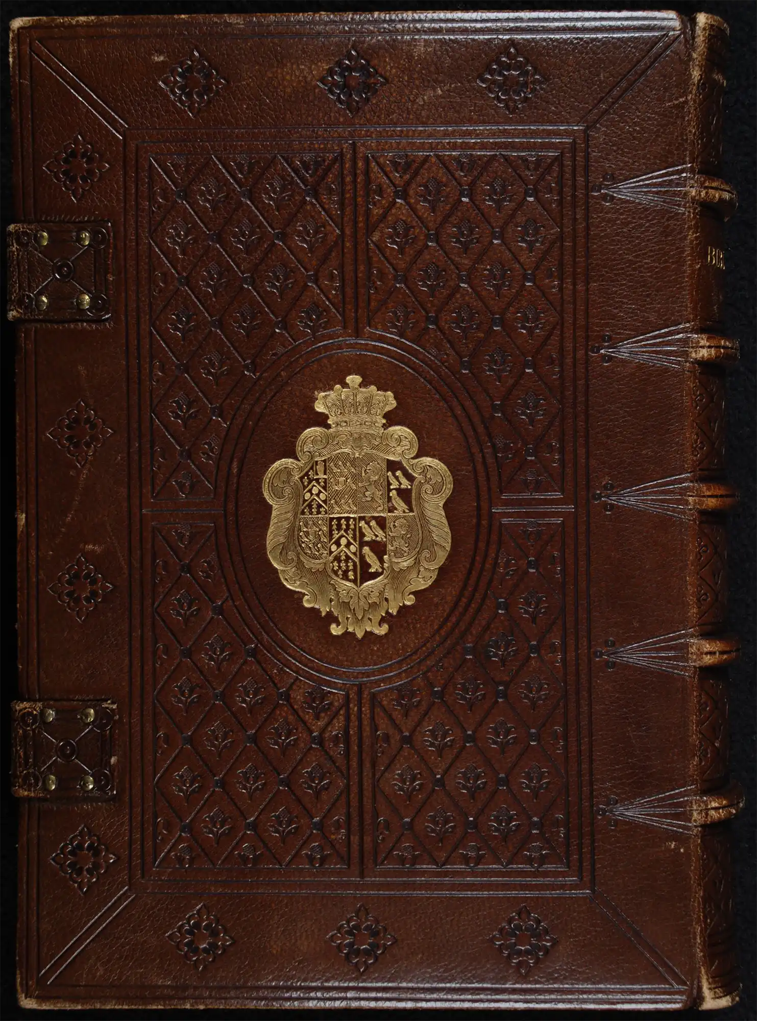 A book with an armorial binding is one which has been externally stamped with a coat-of-arms, or any part of a coat-of-arms, such as a crest, to signify individual or family ownership. This practice began in continental Europe in the late fifteenth century and took root in Britain around the middle of the sixteenth century, after which it became widely popular.