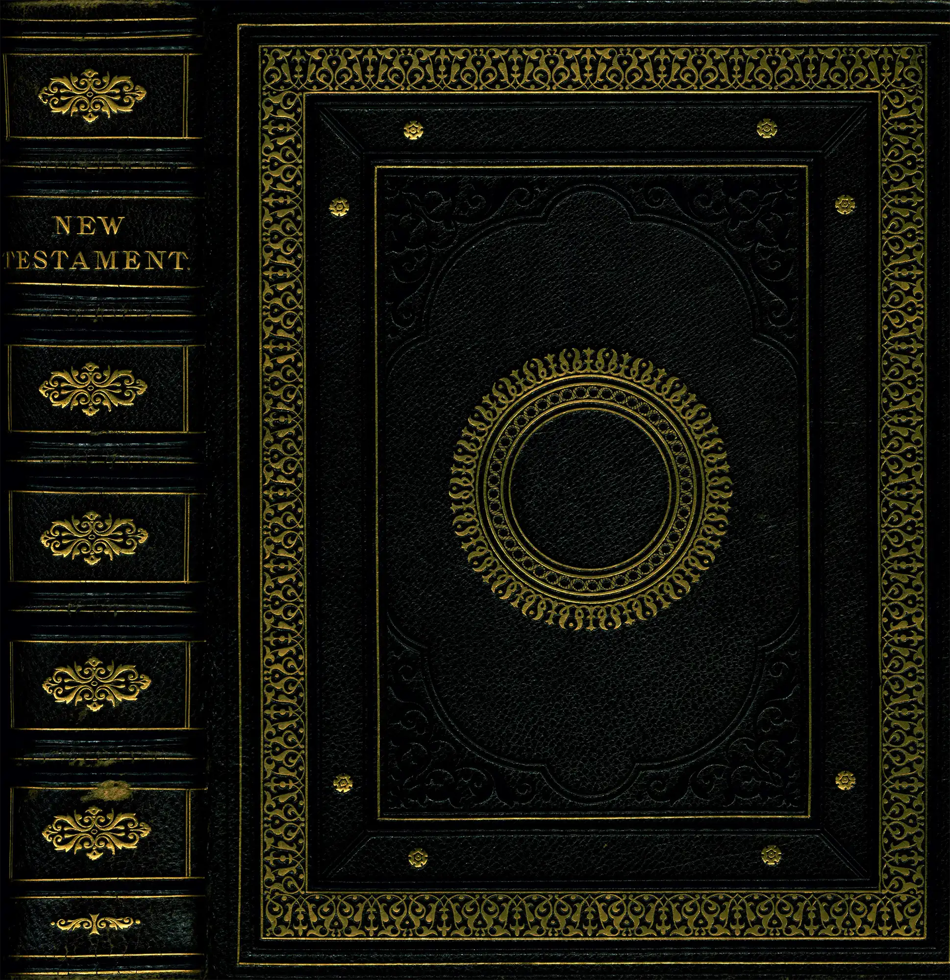 This New Testament has been bound by Riviere in late nineteenth century gold and blind-tooled black morocco. Black morocco was an exceedingly common binding material for English family Bibles of the Victorian era.