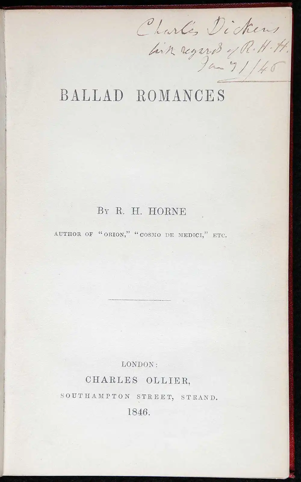 Richard H. Horne. Ballad romances. London: Charles Ollier, 1846.
