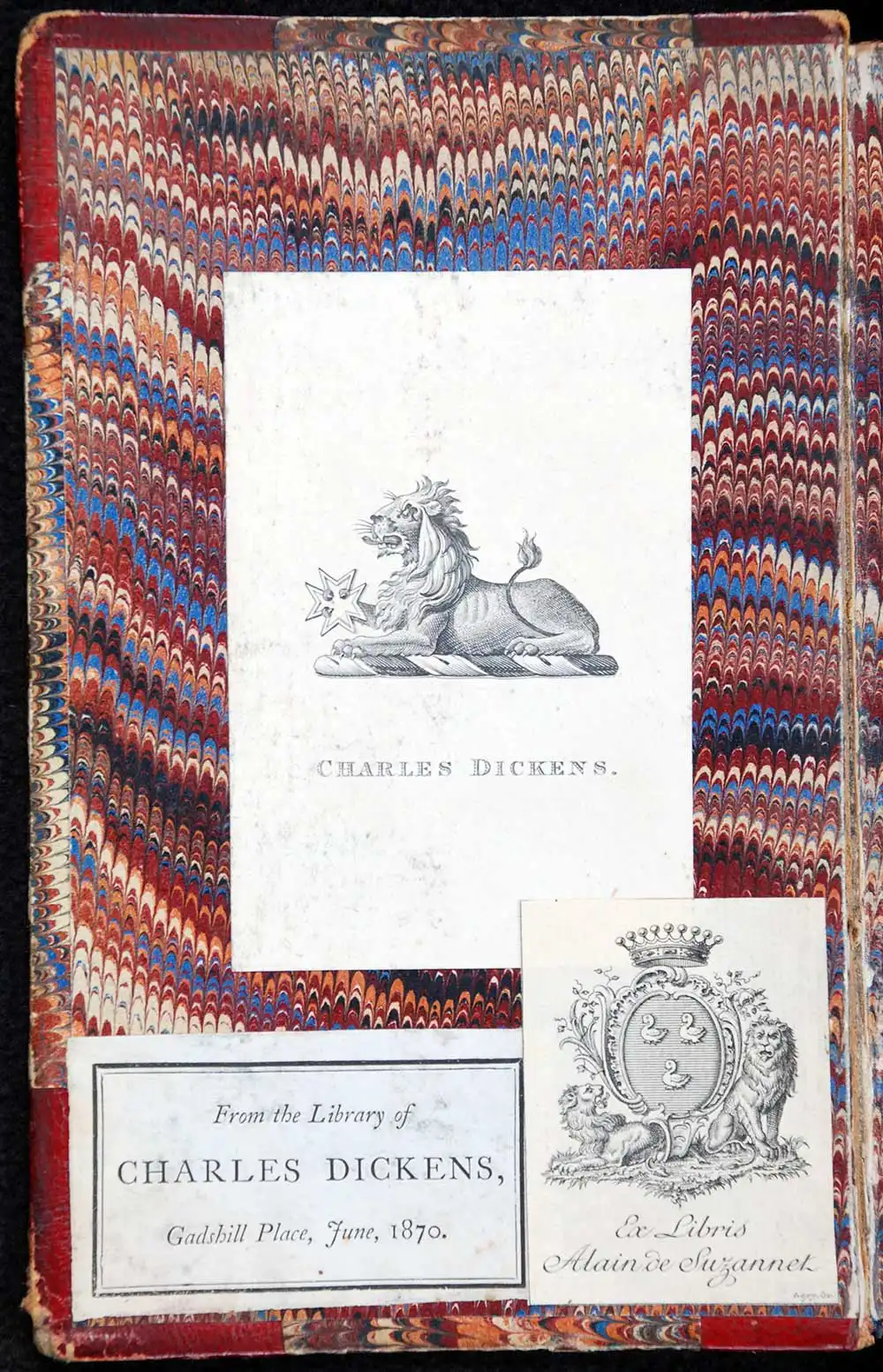 Another book from the personal library of Dickens at Gadshill Place is a French translation of Dickens’ The old curiosity shop published in Paris in 1857 It also contains the bookplate of Dickensiana collector Comte Alain de Suzannet (1882-1950).